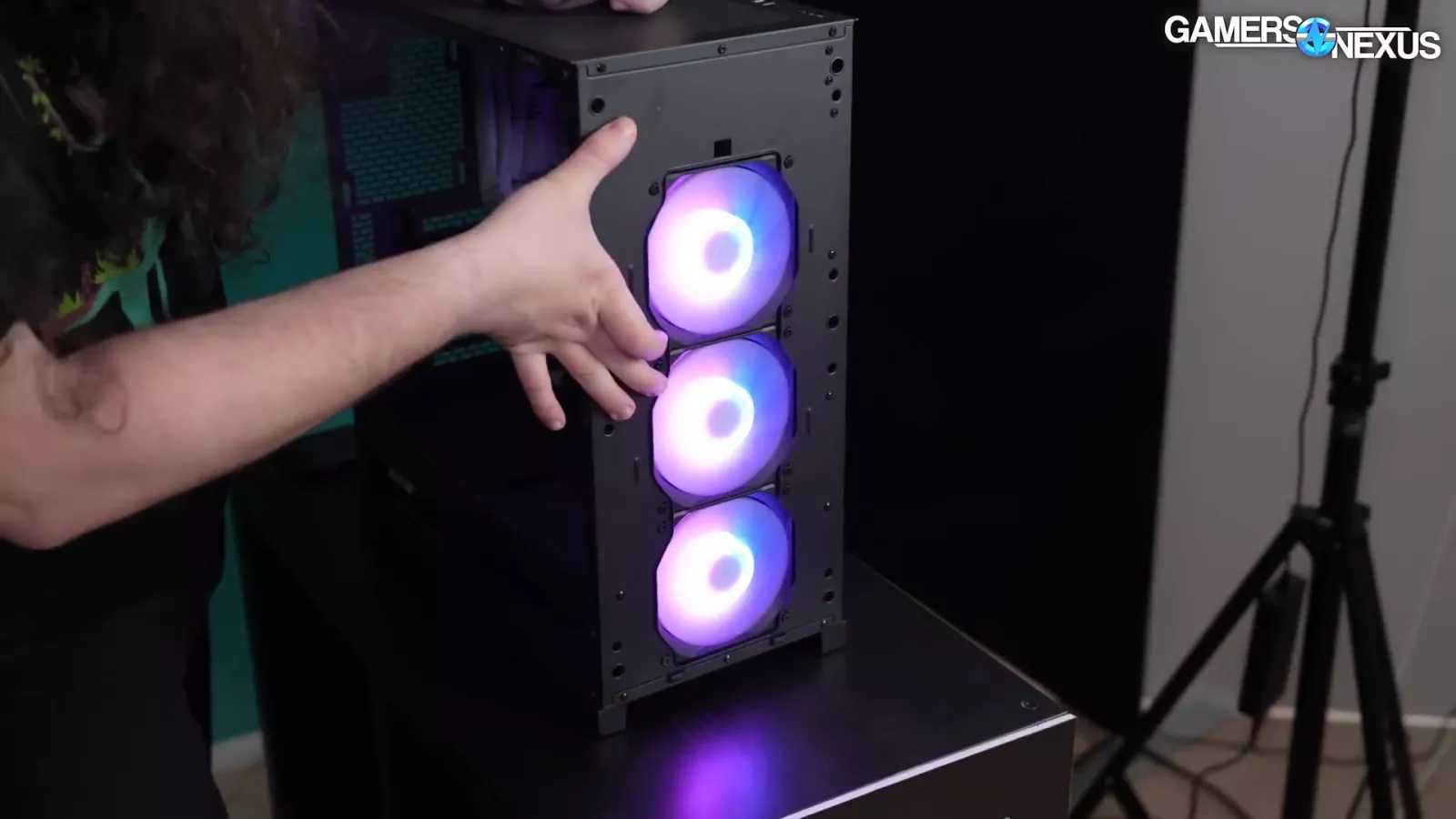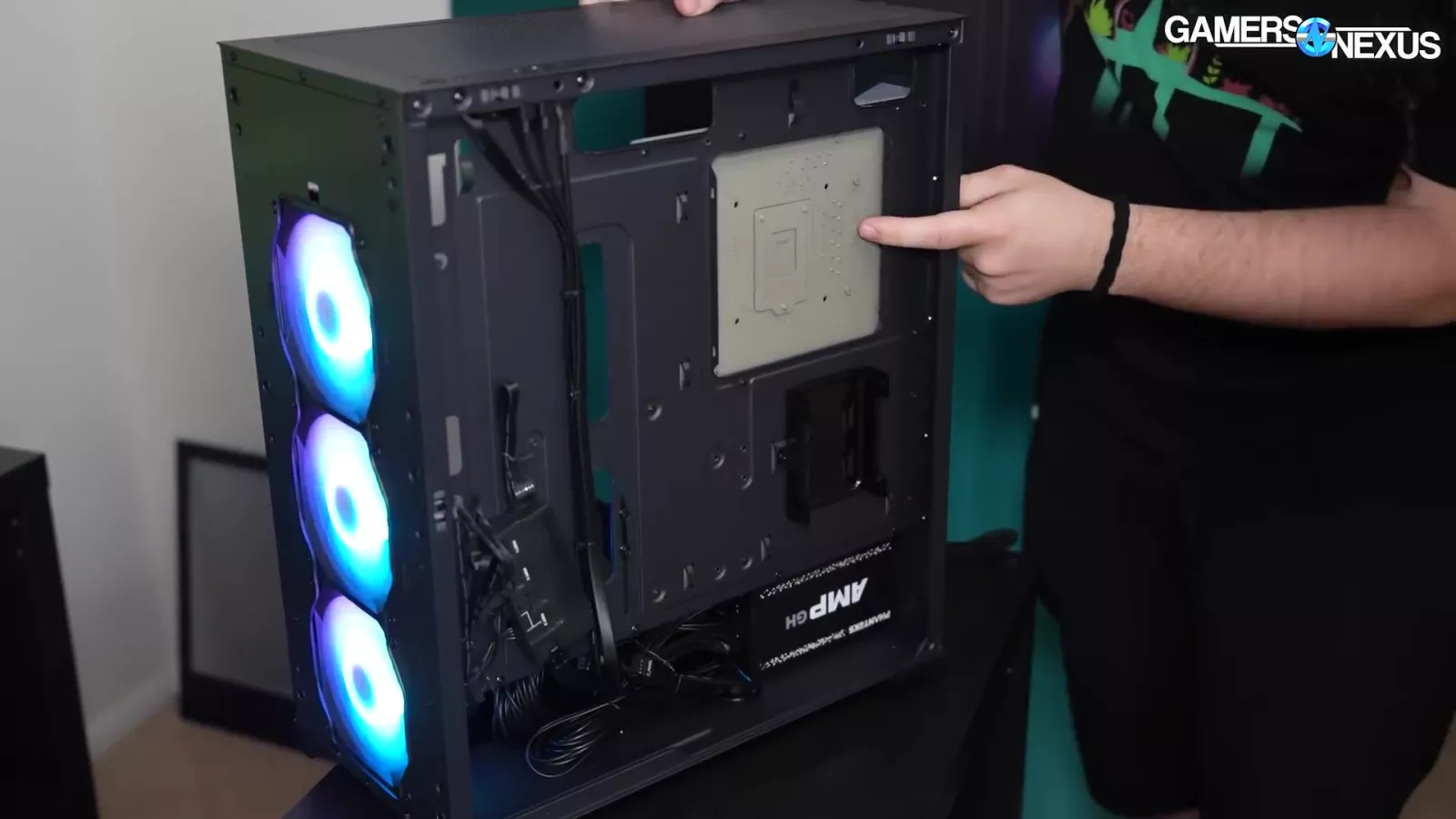 The top panel is part standard ventilation but it does have one side that provides less airflow, which covers where the PSU would exhaust out of. The side panel does have punch-outs for the PSU, however. We don’t test power supplies, though that may change in the future. Power supplies can take a lot of thermal abuse, however, so we’re not super concerned here.