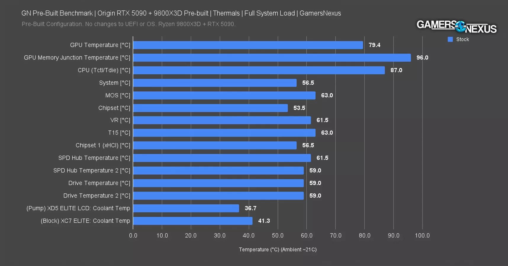 The RTX 5090 is the most valuable thing in this for its 32GB of VRAM, and to show you how much they care about the only reason you’d buy this prebuilt, Origin incinerates the memory at 100 degrees Celsius by choosing to not spin the fans for 8 minutes while under load.