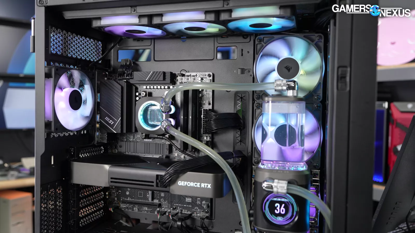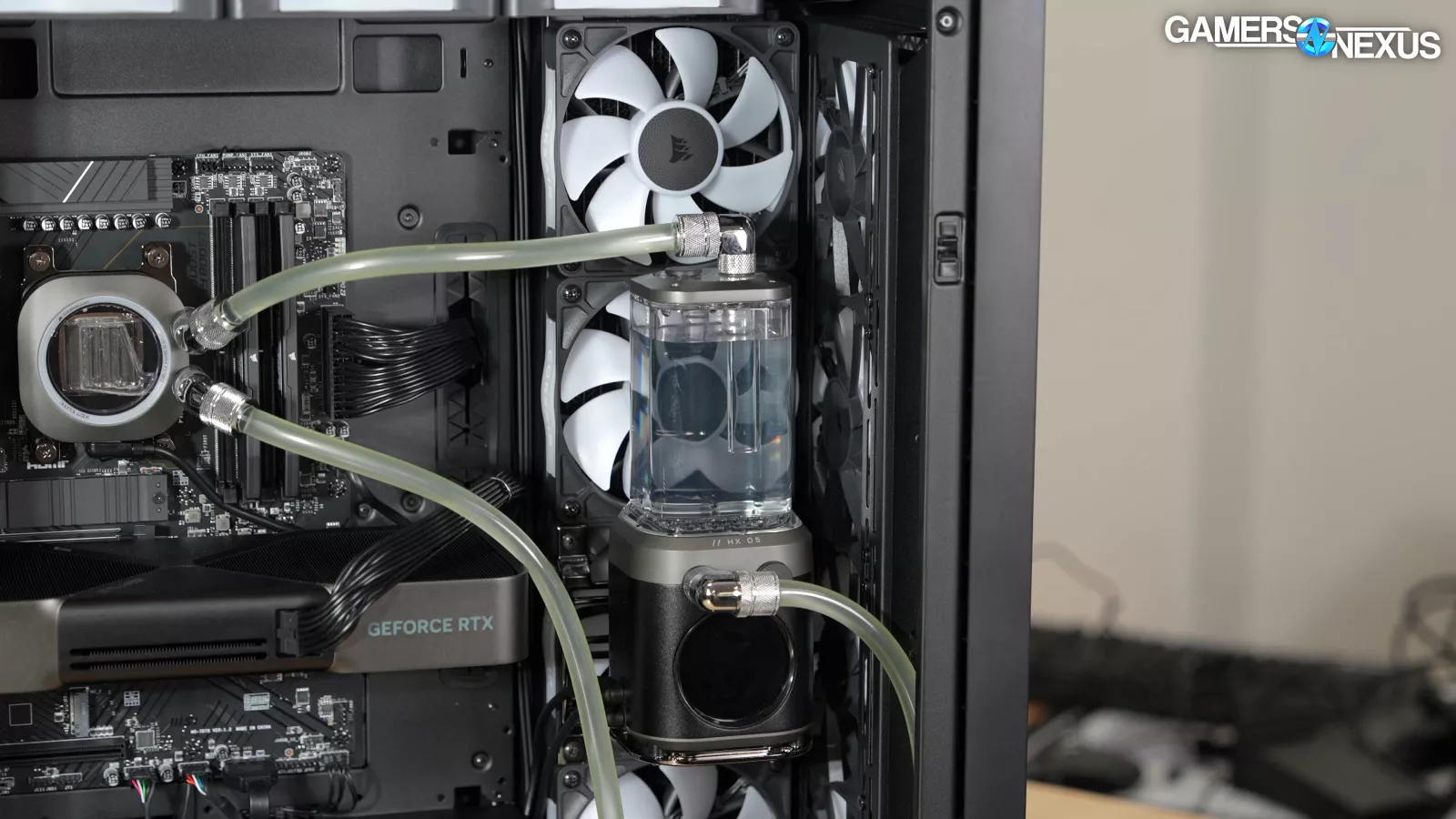 - The fans in the system don’t ramp up until the liquid-cooled CPU gets warm, which means the air-cooled GPU temperature suffers