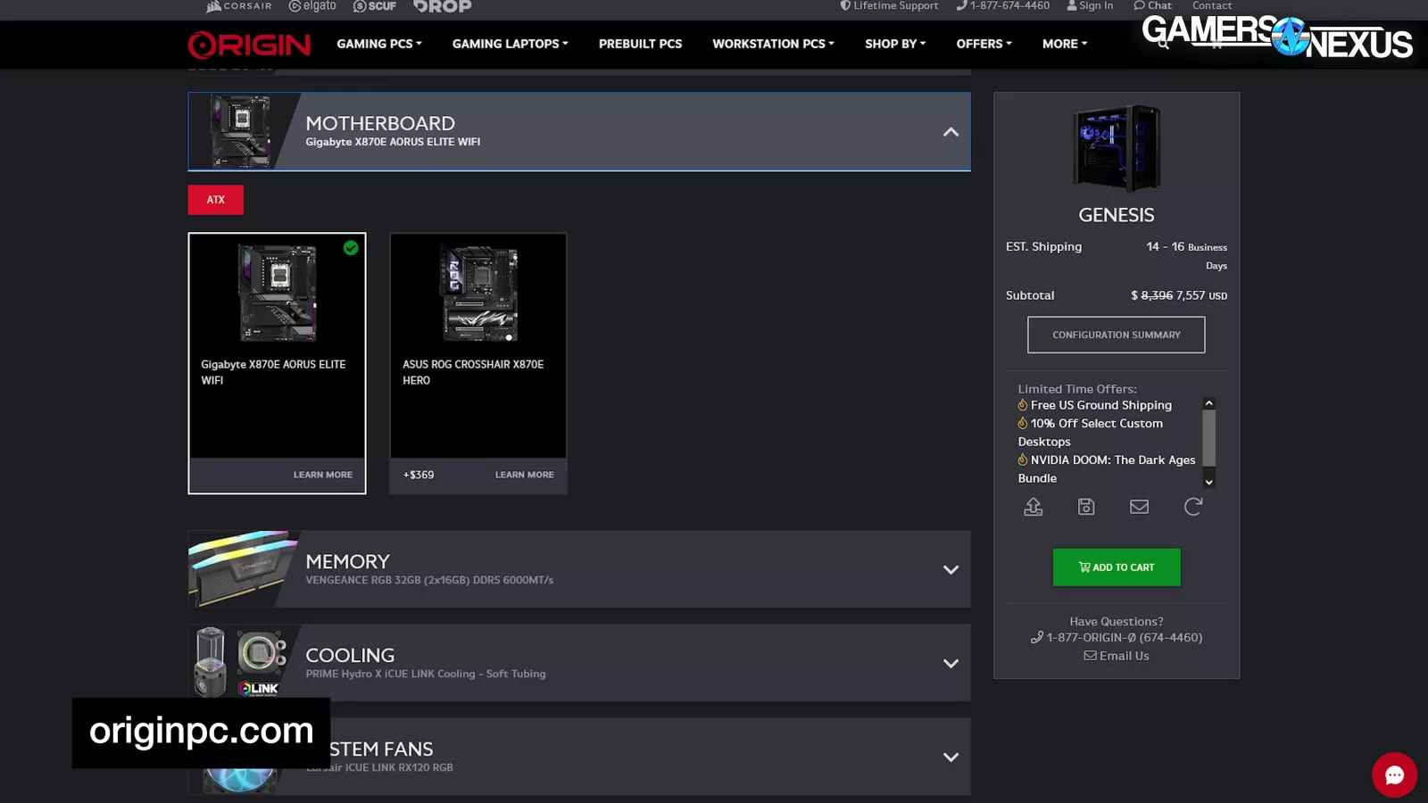 Origin PC RTX 5090 + 9800X3D "Genesis" Part Prices | GamersNexus