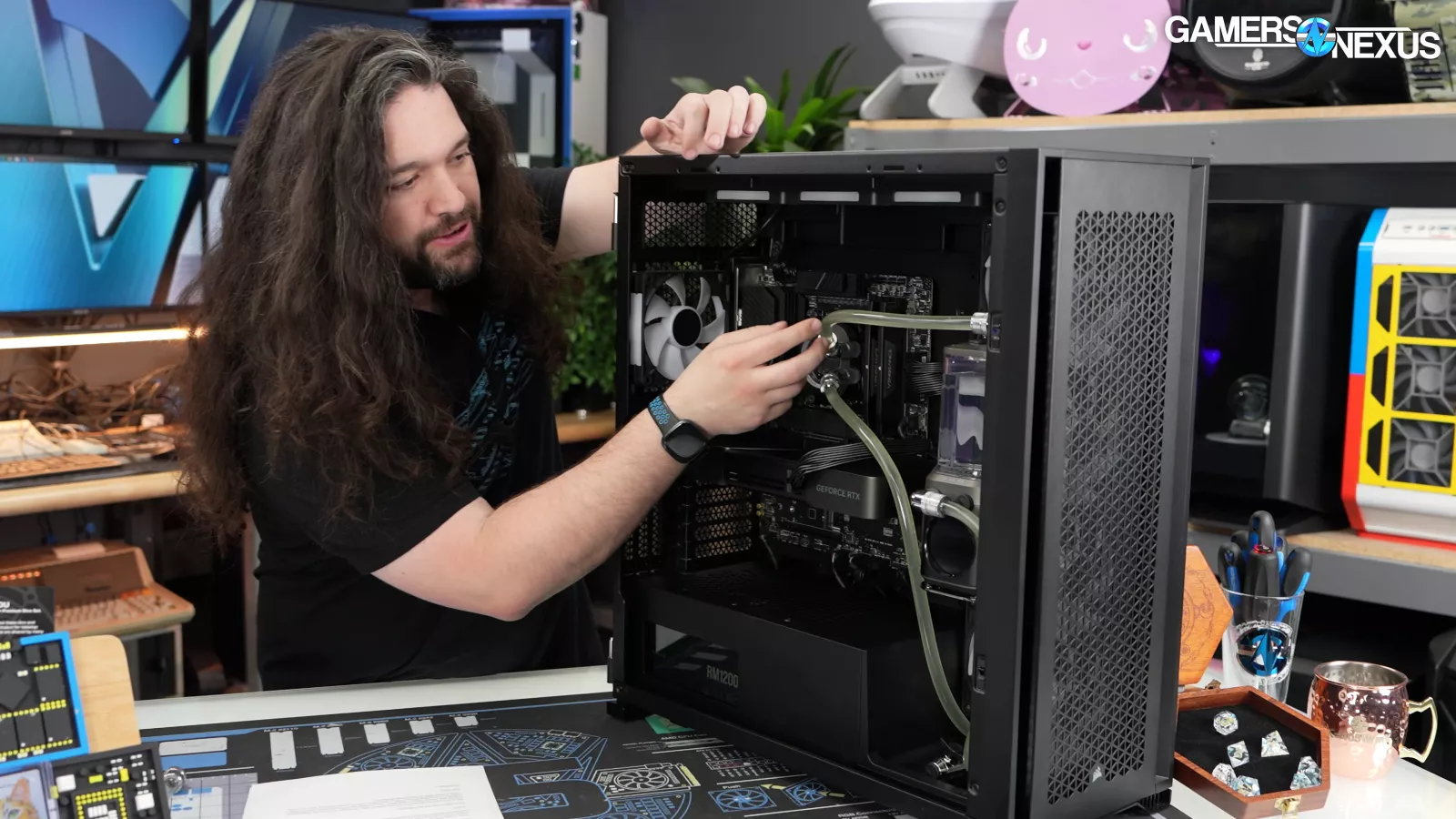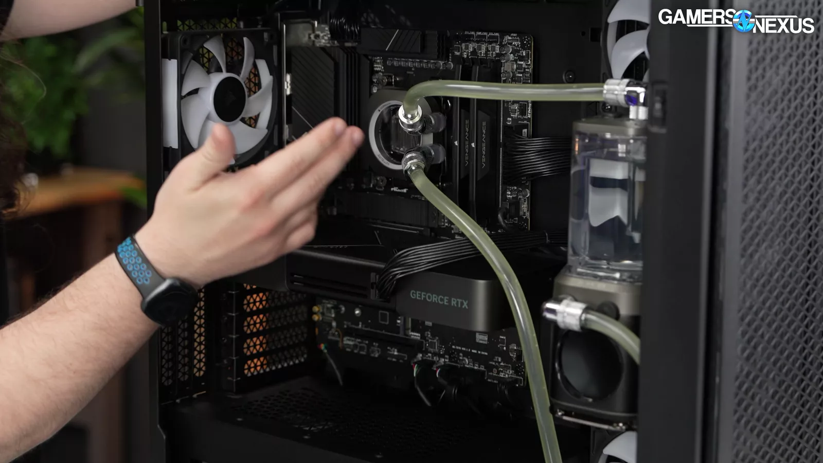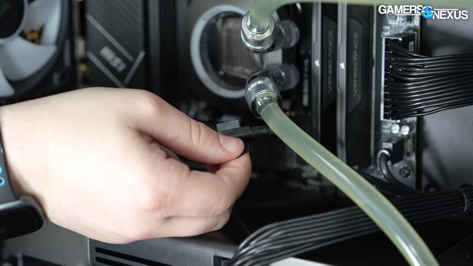 This new Genesis has a loop that’s technically set up better than the last one, but it only cools the CPU. That means we have a $6,500 computer with water cooling, but only on the coolest of the two silicon parts -- the one that pulls under 150W. That leaves the 575W RTX 5090 FE to fend for itself, and that doesn’t always go well.