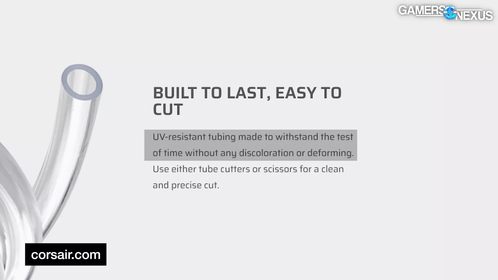 Corsair says its XT Softline tubing is “UV-resistant tubing made to withstand the test of time without any discoloration or deforming.”
