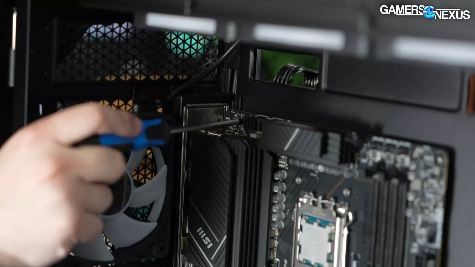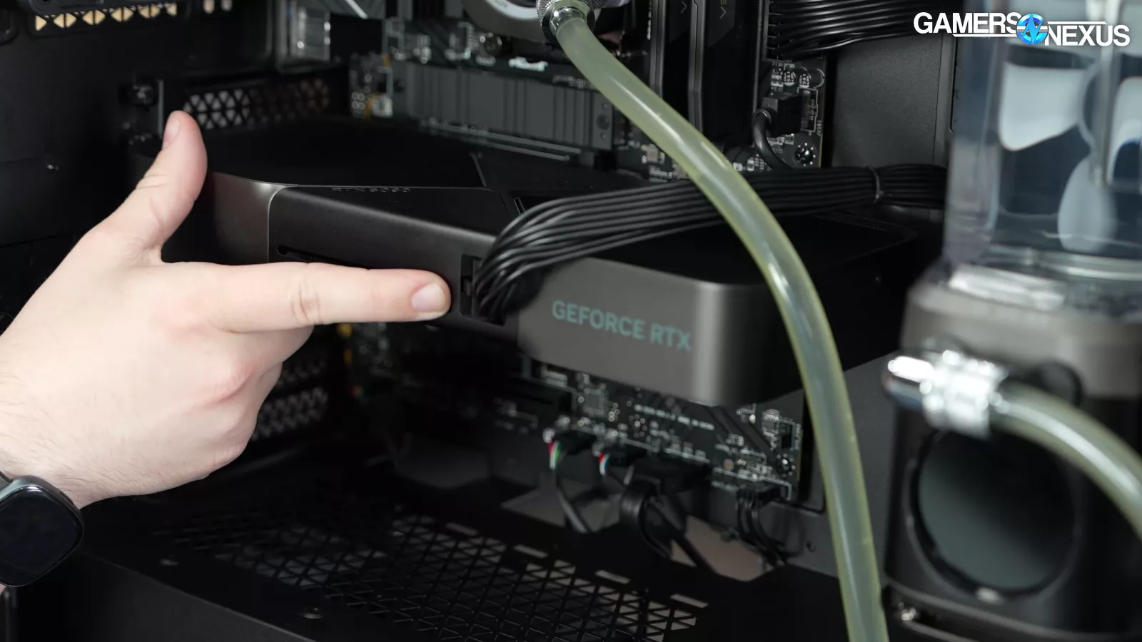 Looking at the other side of the system, we can see that the power cable leading into the 5090 is mostly seated, and isn’t a concern to us.