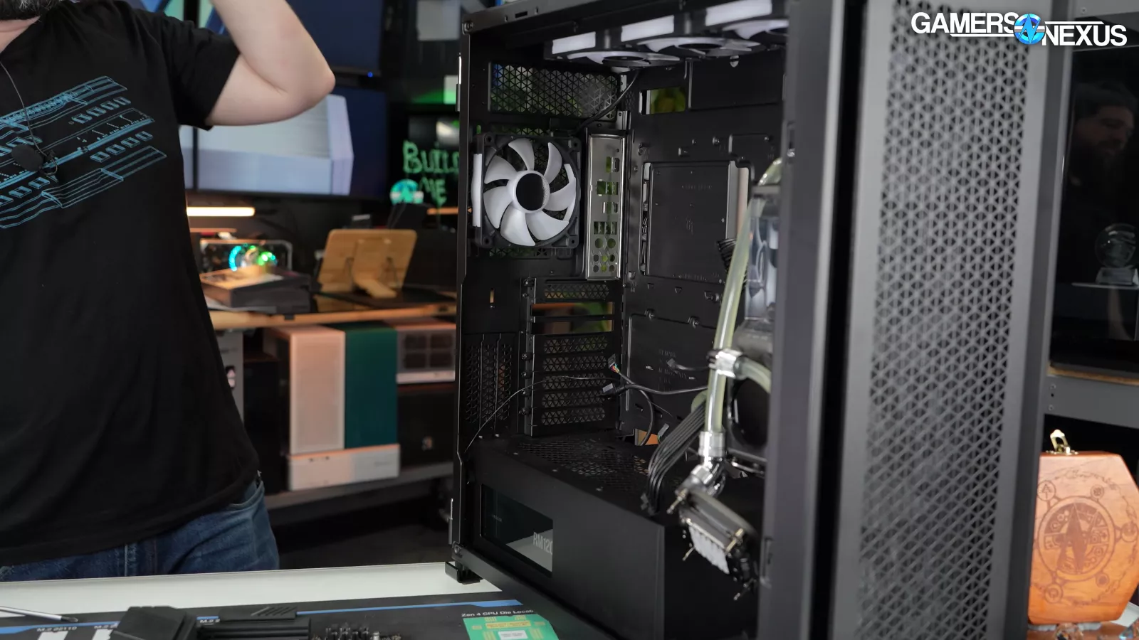 The system had a severely underclocked CPU, ridiculously aggressive fan behavior (which is the opposite of the system we’re reviewing today), chipped paint, and a nearly unserviceable hardline custom liquid cooling loop. Hopefully this one has improved. And hopefully isn’t 1GHz below spec.