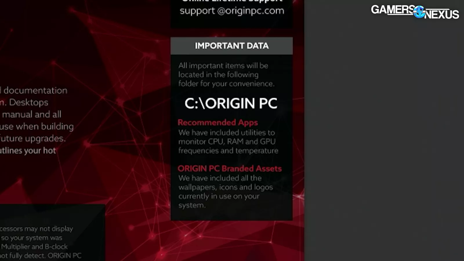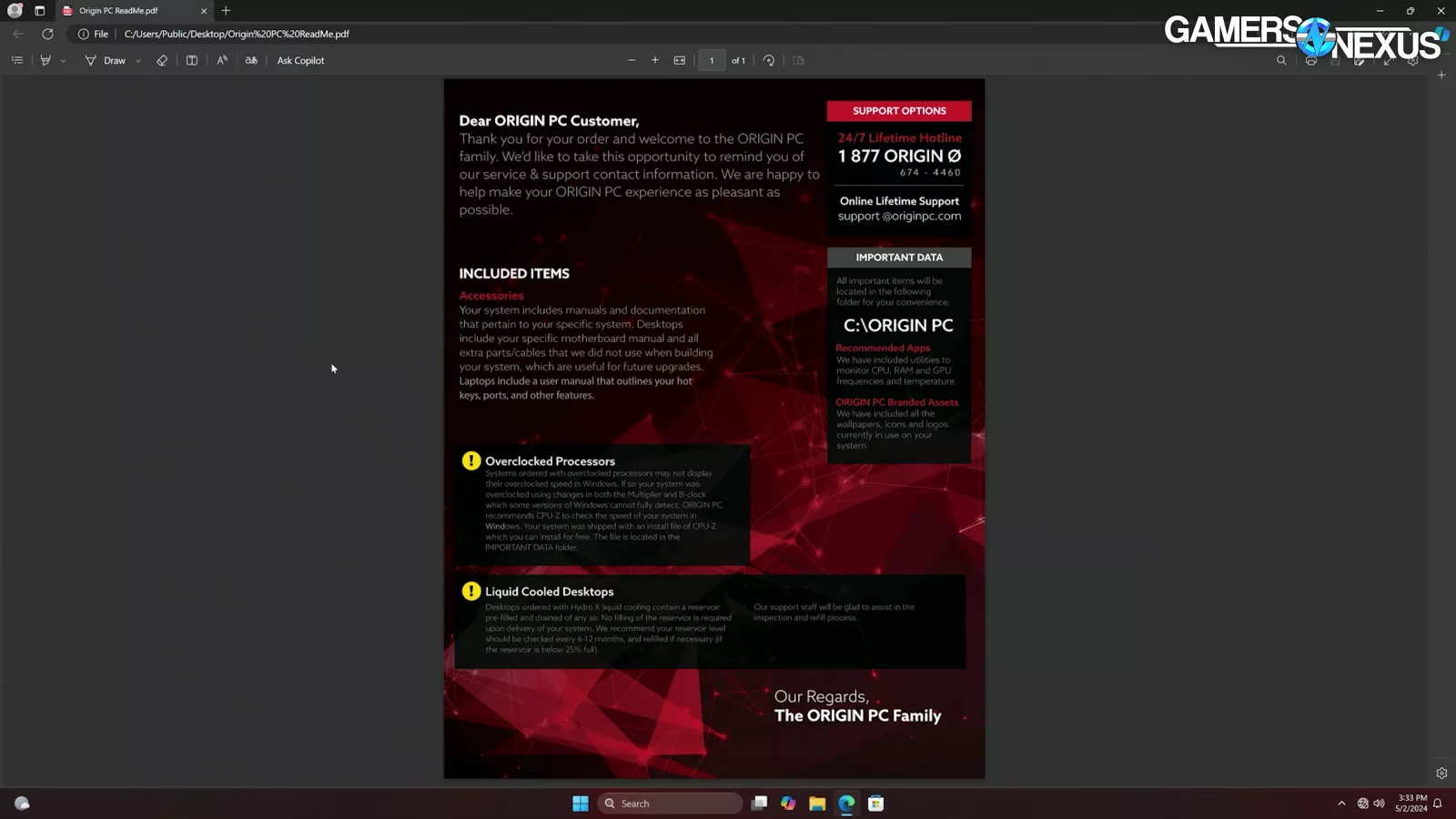 There’s also an “Origin PC ReadMe” PDF that doesn’t offer much except coverage for Origin’s ass with disclaimers and points of contact for support. One useful thing is that it points the user to “C:\\ORIGIN PC” to find “important items.”