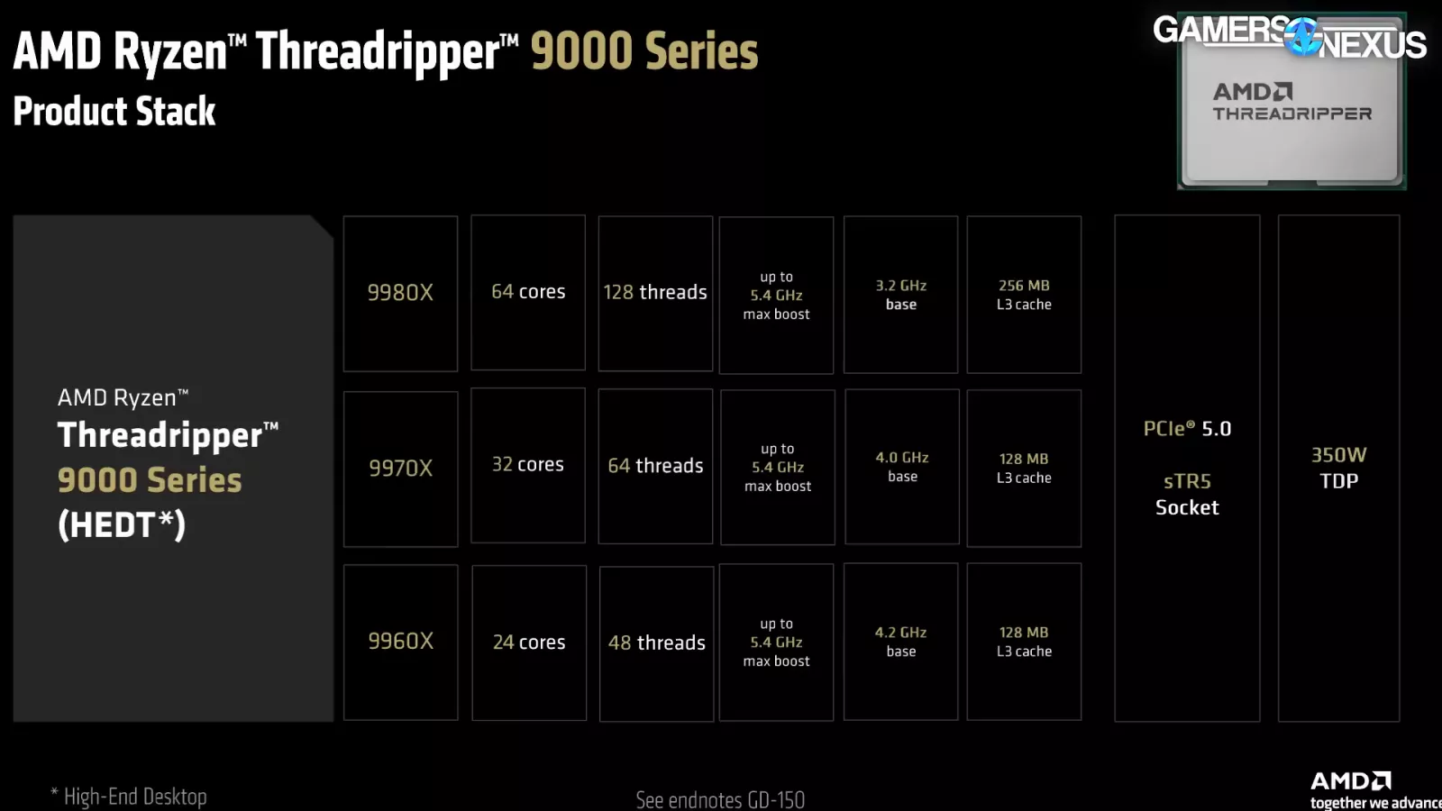 • AMD announced new Threadripper CPUs that include the 9980X, 9970X, 9960X along with PRO 9000 WX-series CPUs