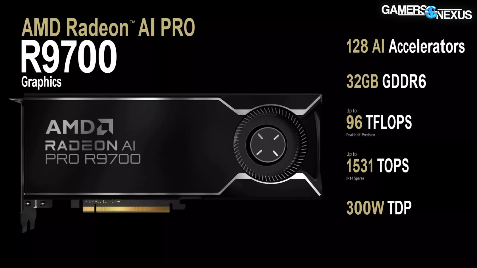 • AMD also revealed the 9995WX, its new AI Pro workstation GPU, which will come with 128 AI accelerators, 32GB of GDDR6 memory, up to 1531 TOPS, and a 300W TDP