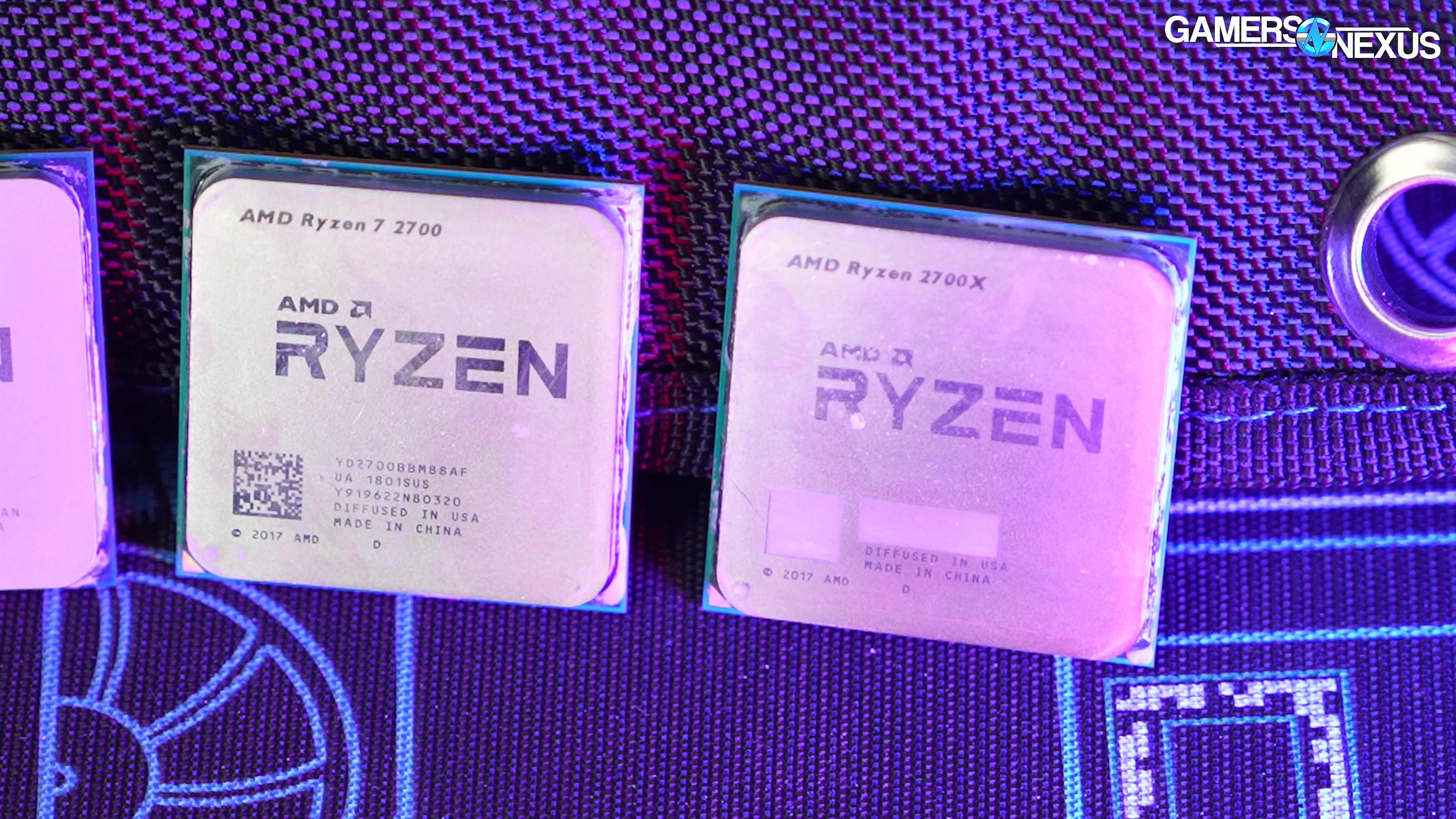 Today we’re revisiting the R7 2700 and R7 2700X CPUs. These came out in 2018 and are now over 5 years old. Original launch prices ranged from $300 to $330, with the 2700 often available for around $200-$250 towards the end of its lifecycle. It was one of the most popular CPUs of its time and struck a strong balance with multithreaded application performance, particularly CPU-side streaming (as we showed in our original game + streaming benchmarks from the review). They competed most directly with Intel’s 9900K that launched later in 2018, or the 8700K before that.