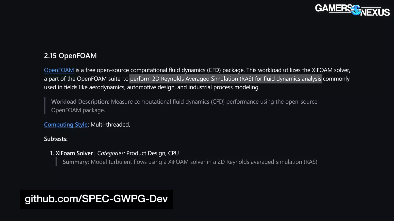 OpenFOAM is next. Per the Spec website, OpenFOAM is a CFD test that “performs 2D Reynolds averaged simulation for fluid dynamics analysis.” It also runs a solver test.