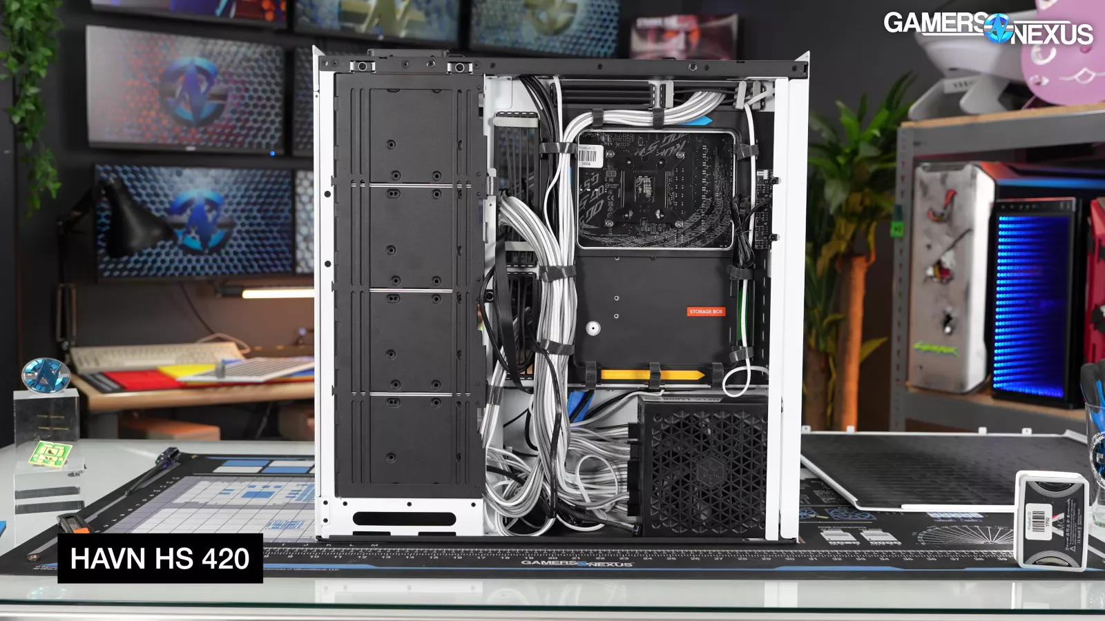 There are a ton of other small attention-to-detail elements, like the fact that HAVN matched the structural reinforcement for the panels to align with fan hubs, or the dead zone, rather than obstructing air intake. You can check our review for all the other details, including our full charts with 7 or 8 different fan configurations.