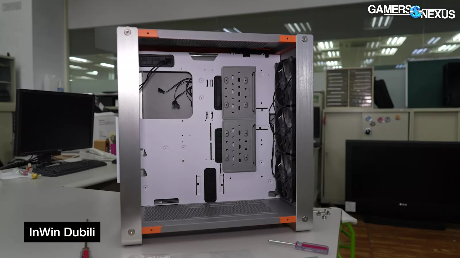 The North comes with either a glass or mesh side panel, which includes options for additional side mounts to further boost cooling performance. Actually, in our recent tour of Wendell’s offices, you can see such a configuration for one of his machines.