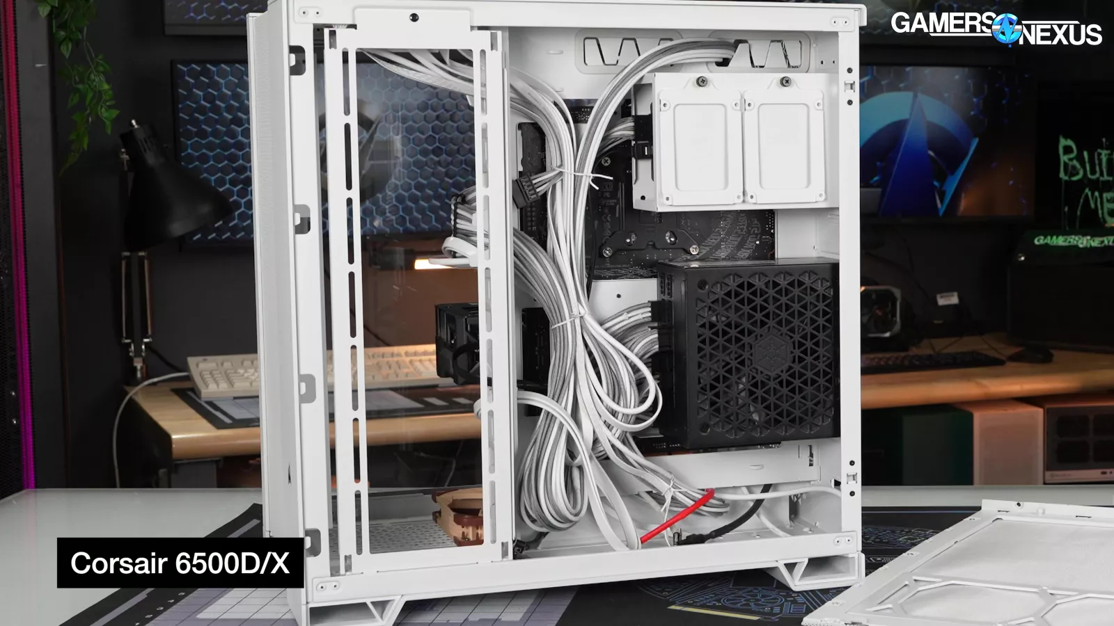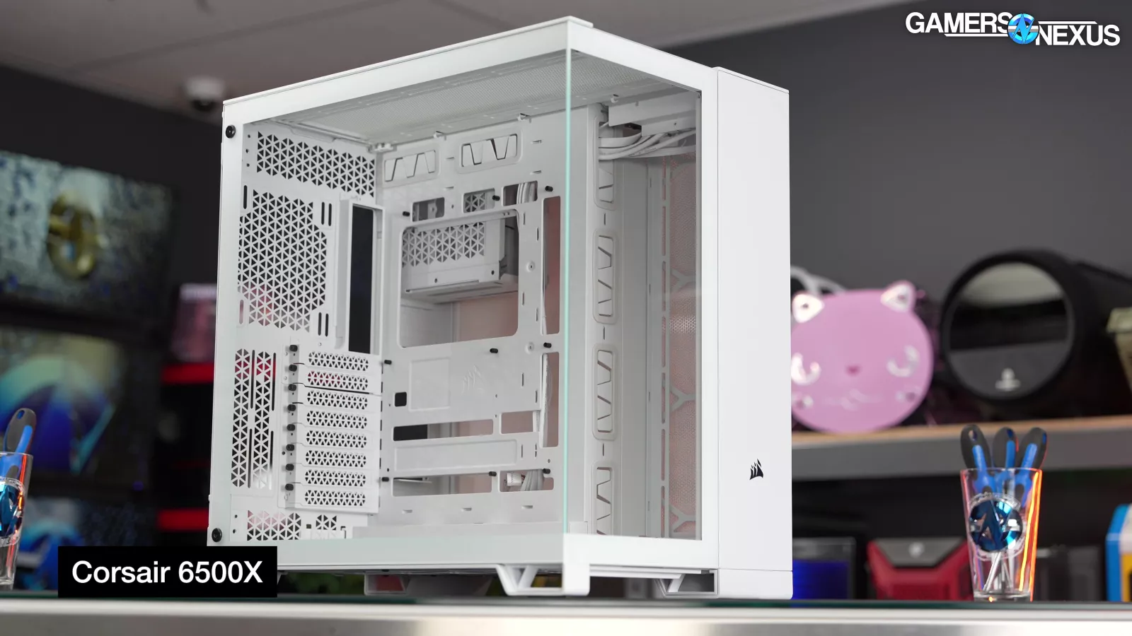 But then it launched the 6500 (read our review) series this year, attempting to jump onto a hype train that had already left the station, and doing so with substandard build quality. The Corsair 6500D and 6500X were $200 without fans, both featuring superbly bendy panels without any reinforcement -- which we found totally unacceptable for a $200 so-called “Premium” case. There were lots of plastics, misaligned panels, and build quality issues.