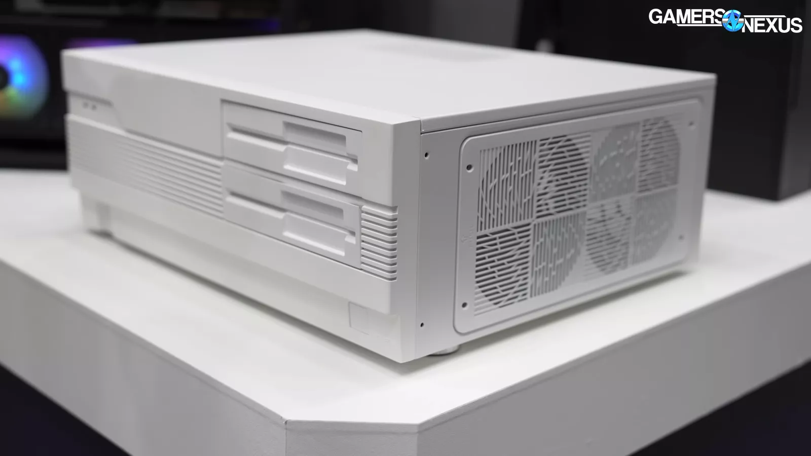The showstopper this year was Silverstone’s FLP02, which is a retro-themed PC case with a functioning real turbo button, molded 5 and a ¼-inch drive bay covers that resemble floppies, and a throwback look with modern compatibility.
