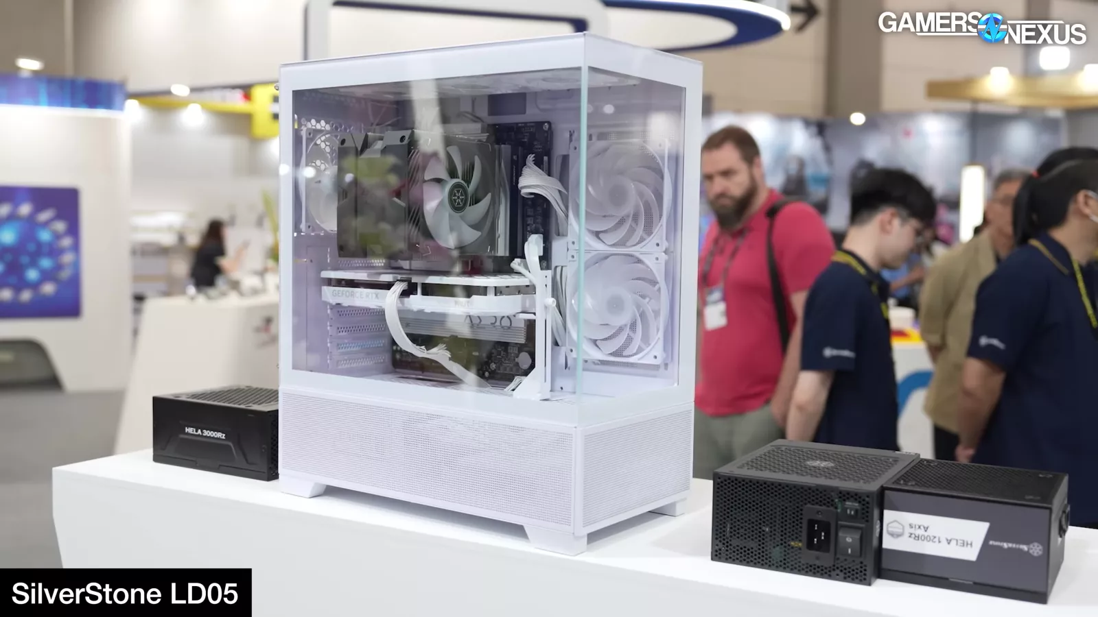 The company also had more contemporary cases, like the LD05 fishtank case. The LD05 has heavily ventilated lower panels and a ventilated side panel to get air into the system. This is more of a traditional design by today’s standards. SilverStone plans to ship it with 3x 120 ARGB fans included and wants to hit $100, depending on tariffs, for a budget-focused airflow case with the glass look to it.