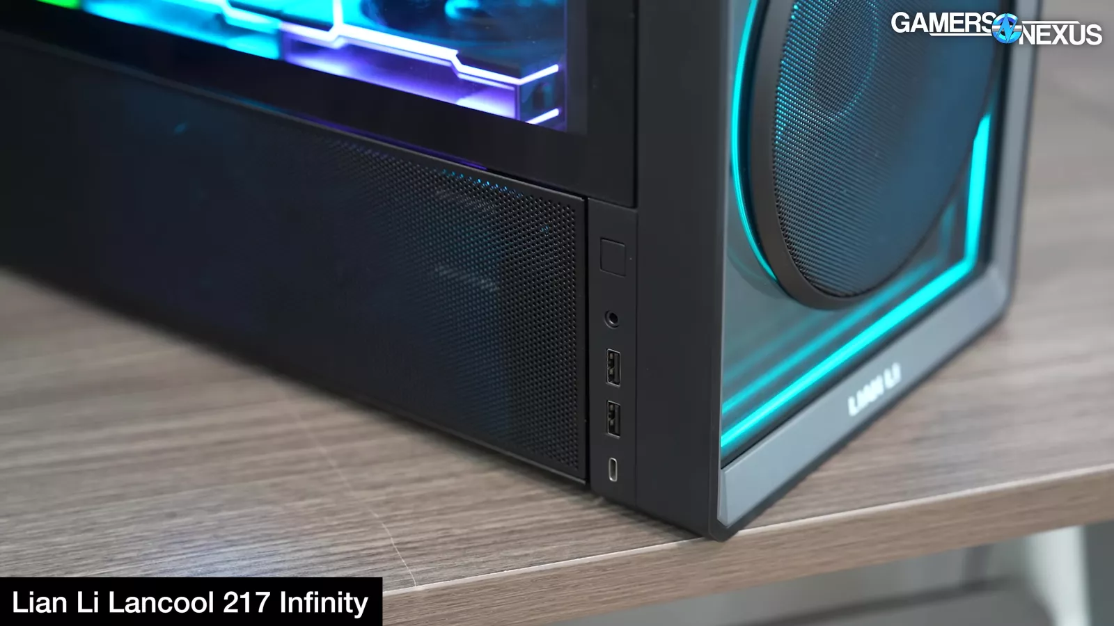 The Lancool 217 Infinity is a Lancool 217 (check out our review here) including all of the tooling for the case internals. The only exception where tooling changed was to the front panel, enabling the infinity mirror effect with LEDs and the support for mounting the glass panel. The only other change is to IO, where Lian Li made it optionally mountable to the top or bottom side. The case will ship with 2x 170mm front fans in the glass and one rear-mounted fan. It should ship at $120.