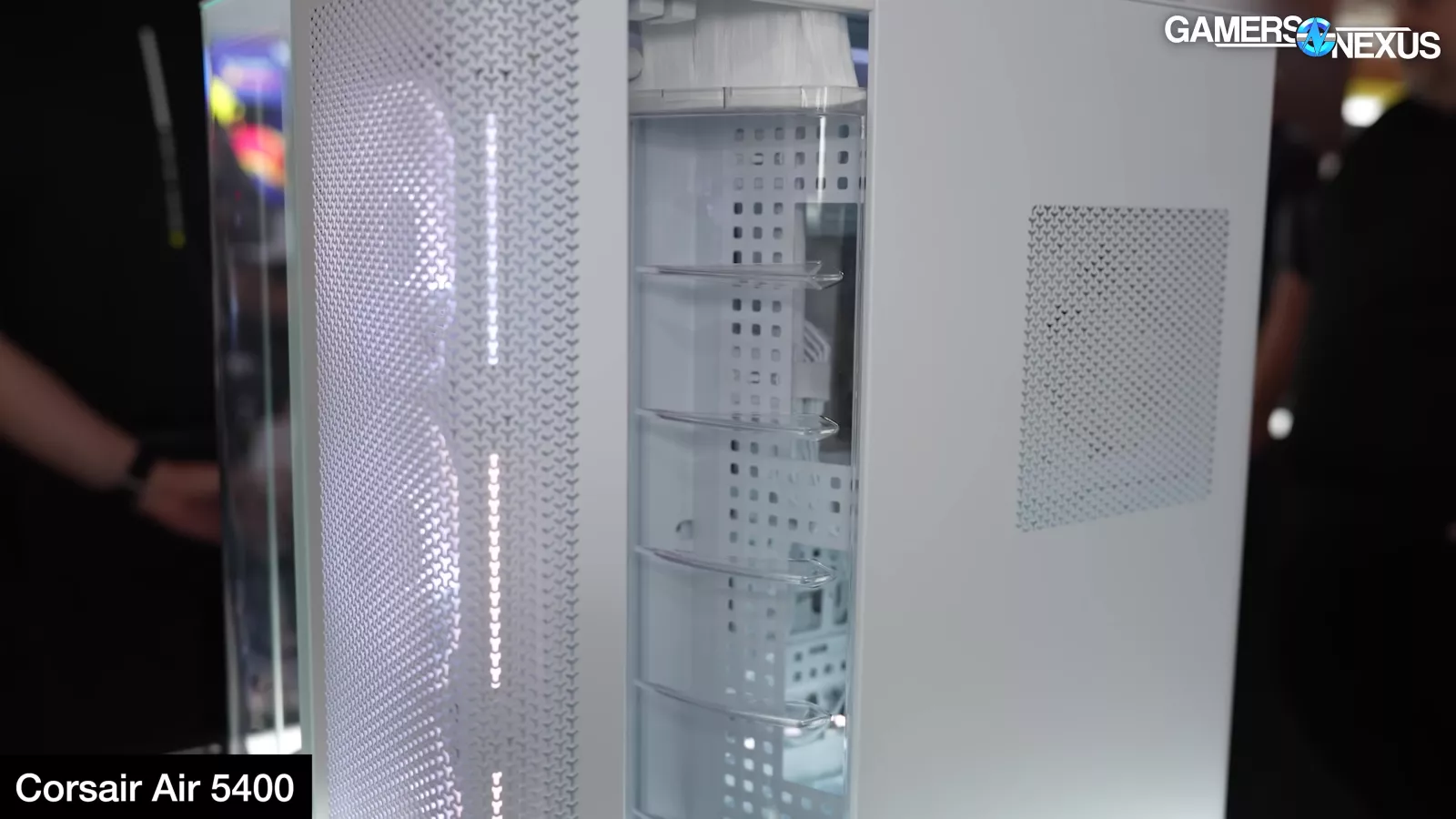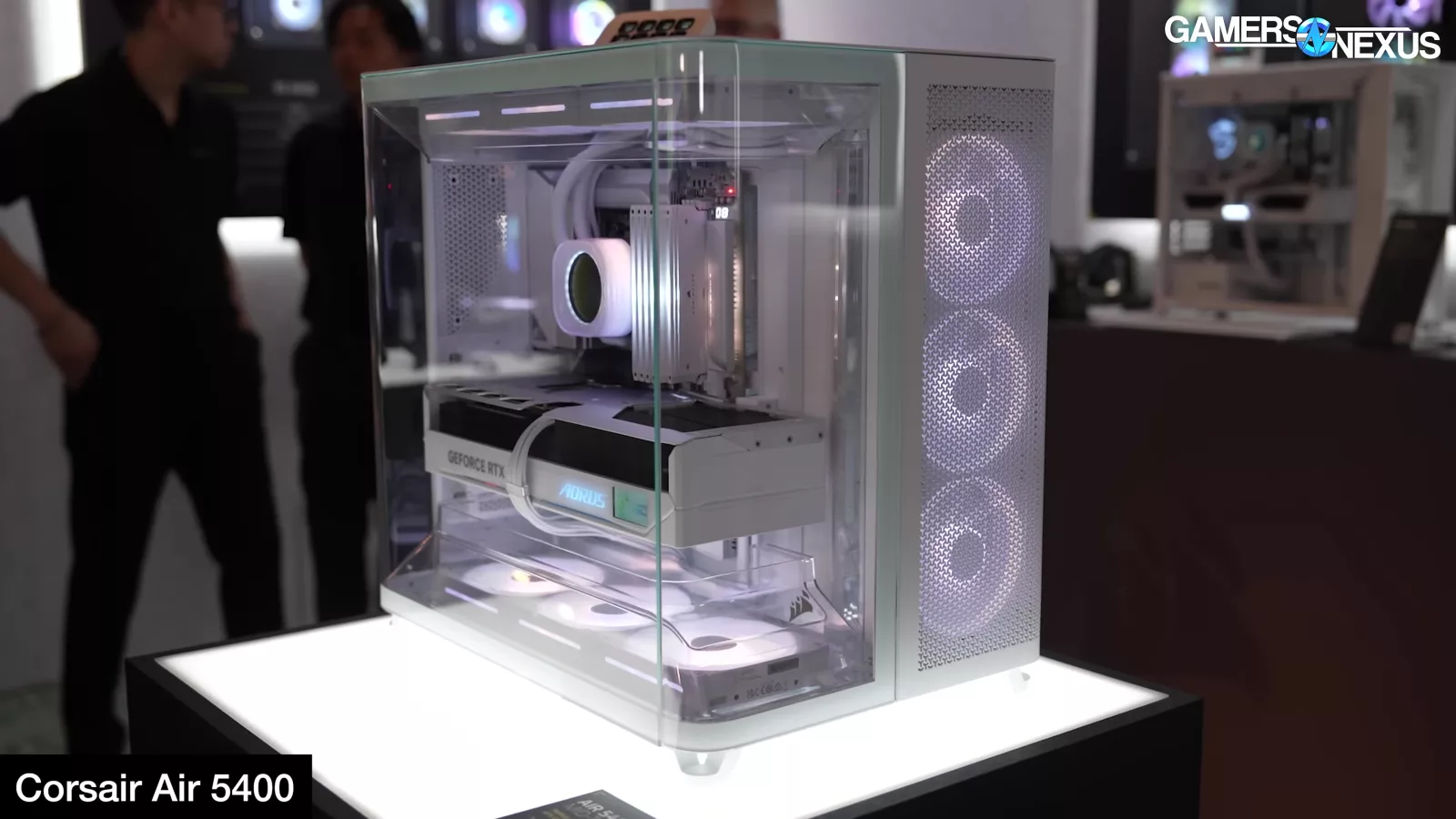 Corsair showed its new FRAME 5000D with LCD panel, its Air 5400 with effectively three chambers that completely isolate front radiator air from the rest of the system, and it had a prototype FRAME 4000D with a power board from Singularity PCs.