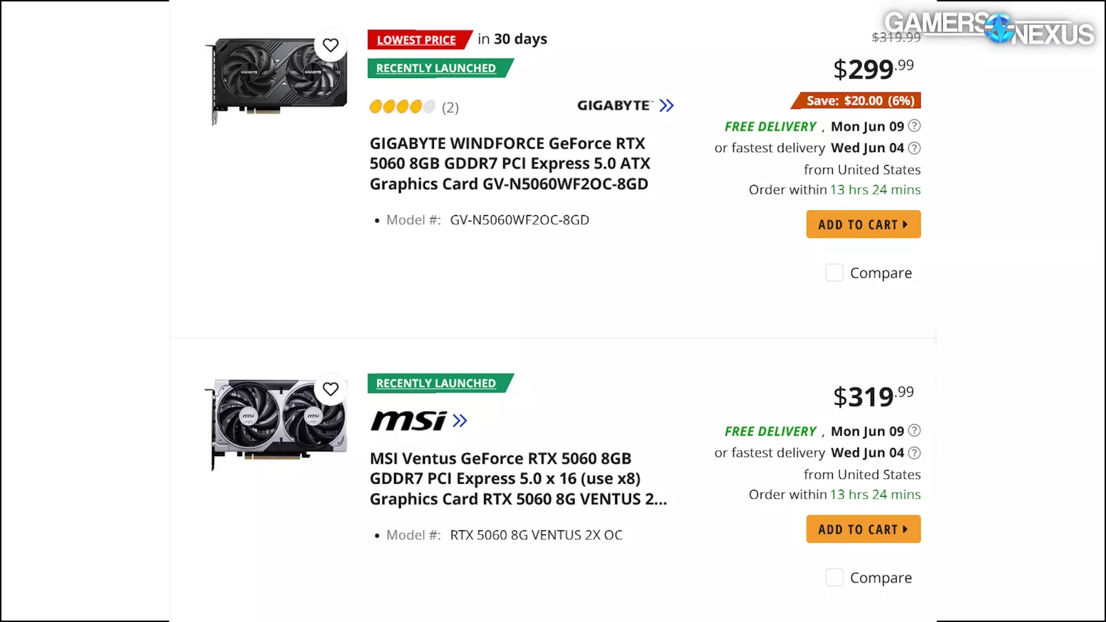 Today, we’re reviewing the RTX 5060. We bought one in Taiwan and one from Newegg. The Newegg price was $330 and the Taiwan one was $360, so we’re ignoring MSRP and using the price we actually paid for purposes of this review. This is a post-launch review, which means we can use real price data rather than what largely turn out to be fake MSRPs for reviews. We’ll likely be buying all test samples of NVIDIA GPUs for some time, if not permanently, but that should make Jensen happy.