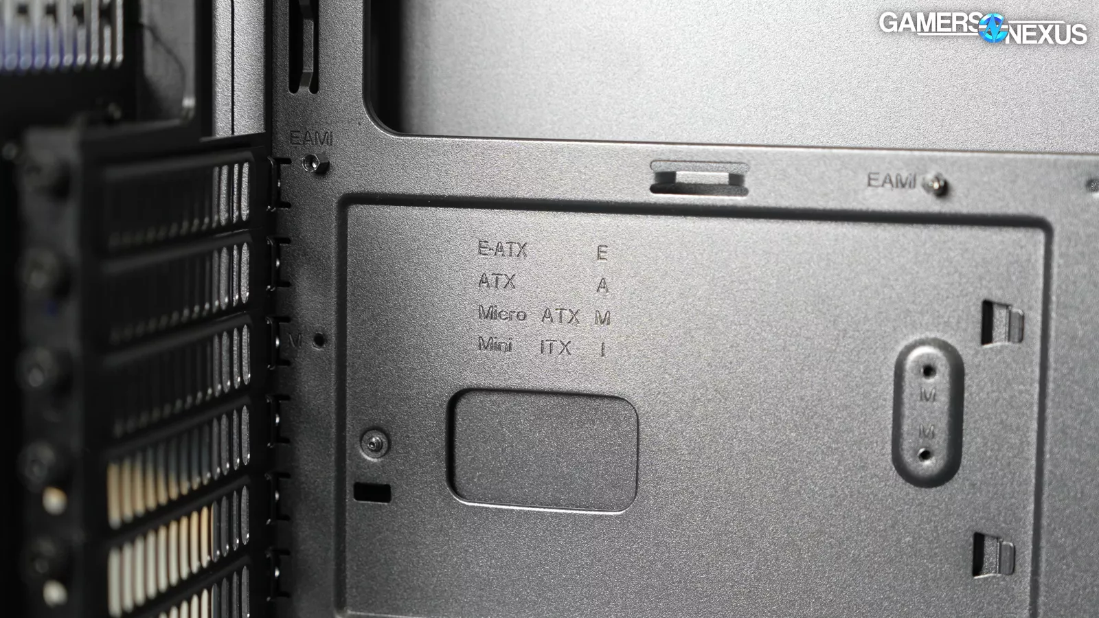 Fractal has a good track record for taking E-ATX support seriously and in a way that’s less likely to trigger another E-ATX rant from us. The North XL continues that trend with standoffs and cable cutouts to fit full 12"x13" SSI-EEB boards. In order to support the additional standoffs, the motherboard tray is entirely flat rather than having a cable channel at the front.