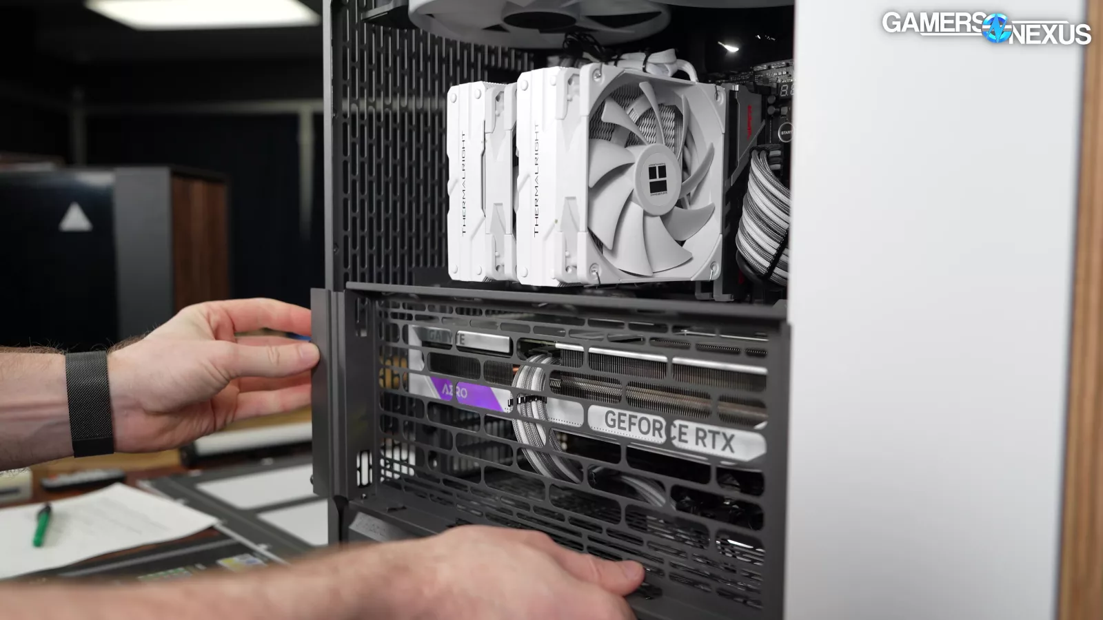 To start with, there are only two possible positions for the bracket in the XL versus three in the original, which is more of a simplification than a downgrade. Putting the bracket in the upper position will mostly benefit downdraft coolers, but it can fit over tower coolers up to 155mm tall, which is enough to fit even the Peerless Assassin that we use for case testing. Moving the bracket to the lower position focuses cooling on the GPU.