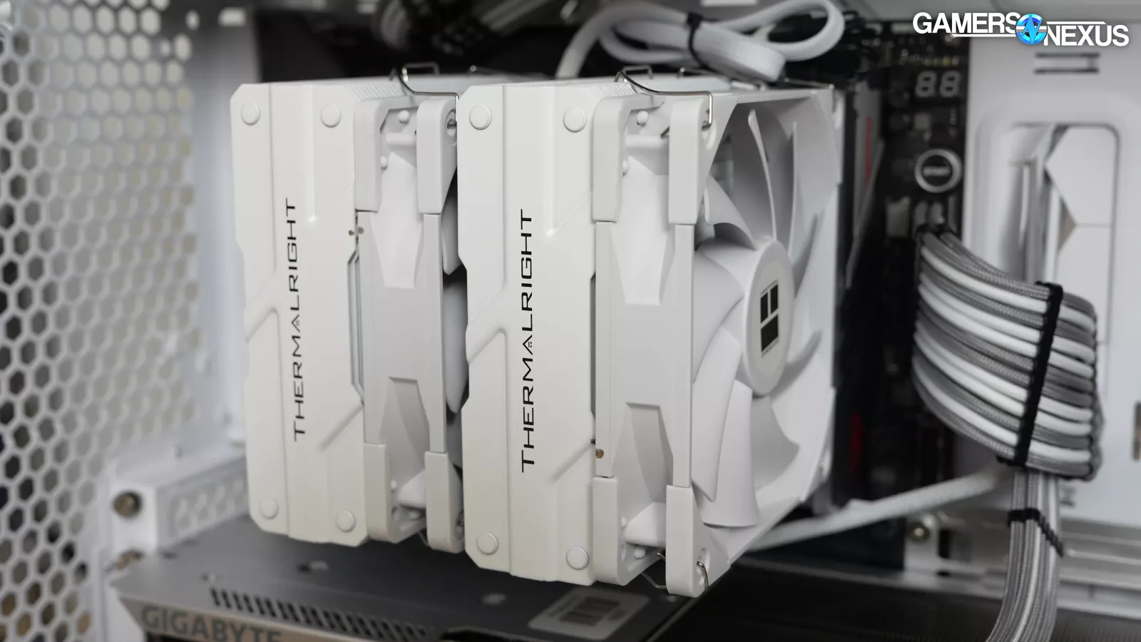 For our CPU cooler, we’re still using an air cooler in the Thermalright Peerless Assassin, which we chose because it holds pressure really well.