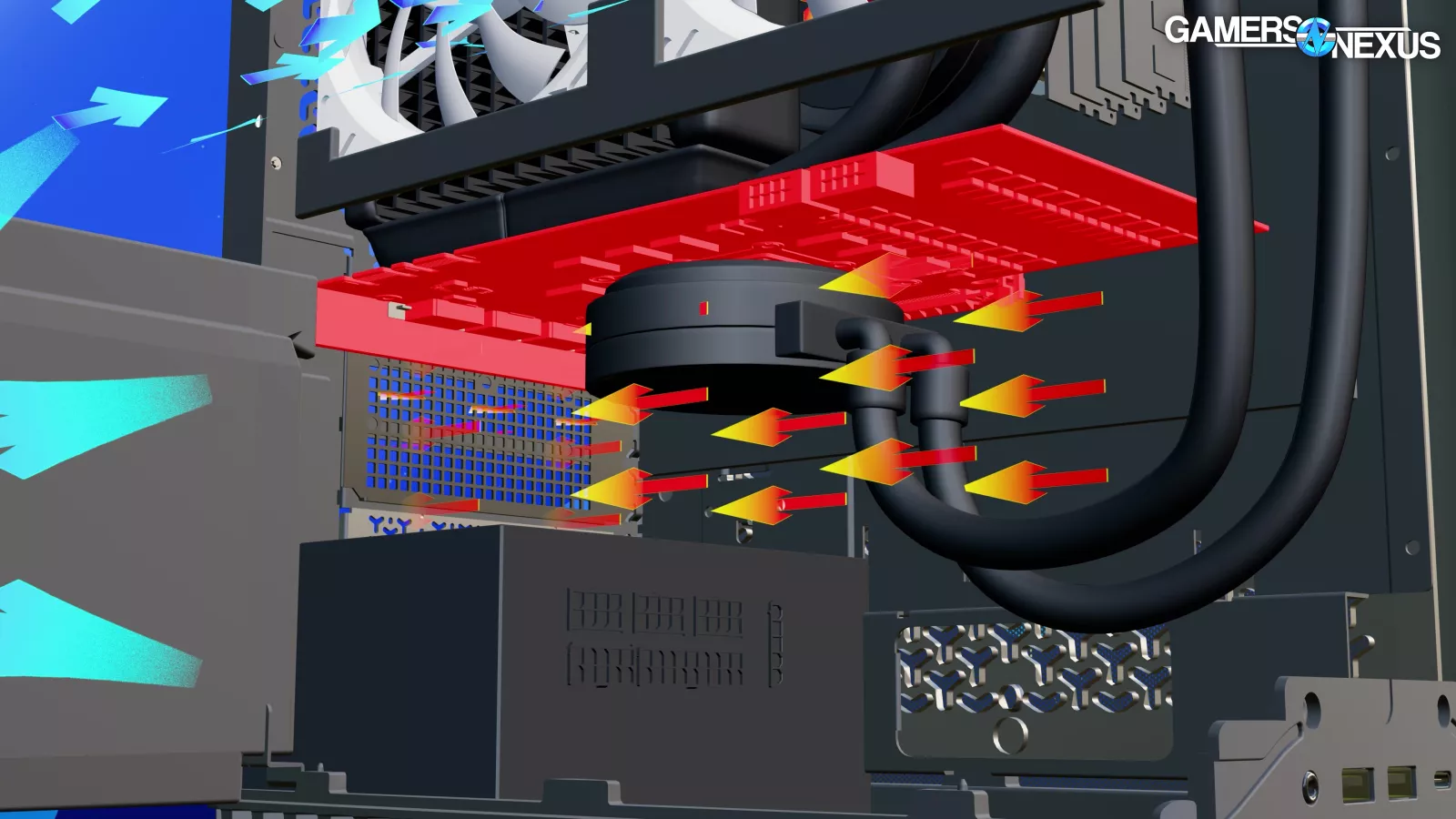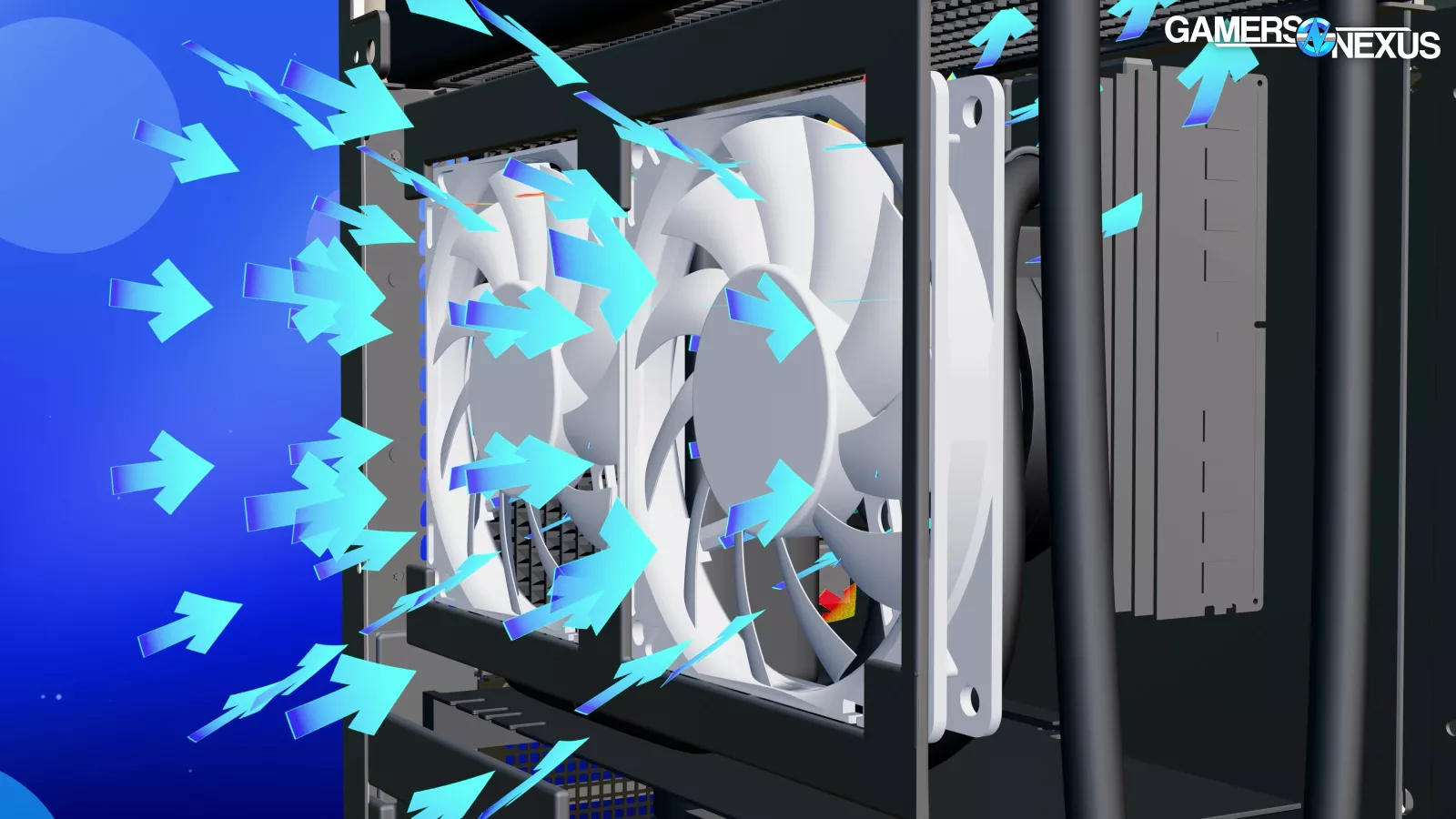 Before moving to BIOS, we’ll look at the airflow situation. We made a custom 3D animation to help visualize the airflow patterns we observed during testing.