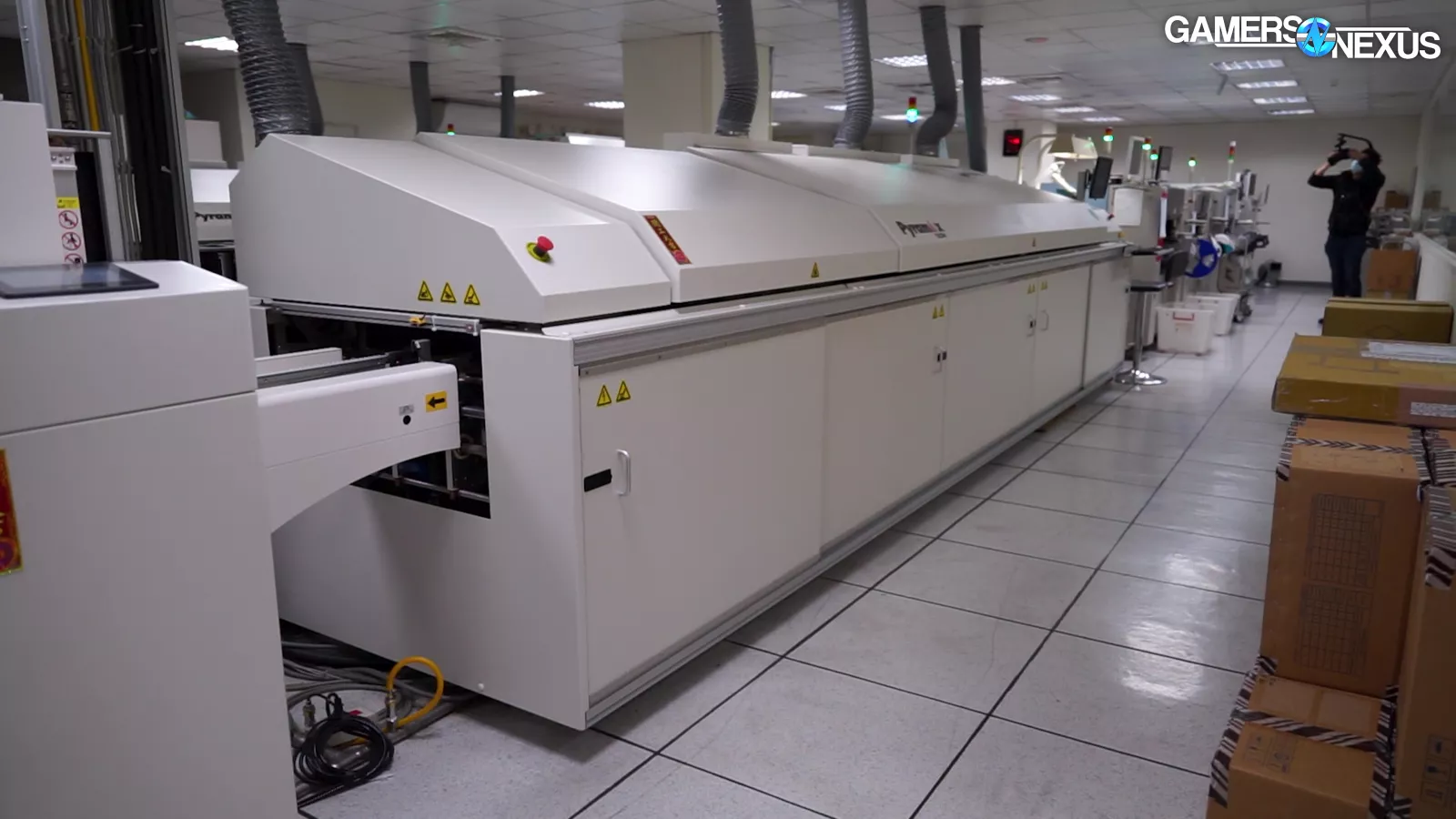 And the only human intervention is to keep a constant feed of reels upon reels of components, trays of GPUs or memory modules or silicon, and bars of solder.
