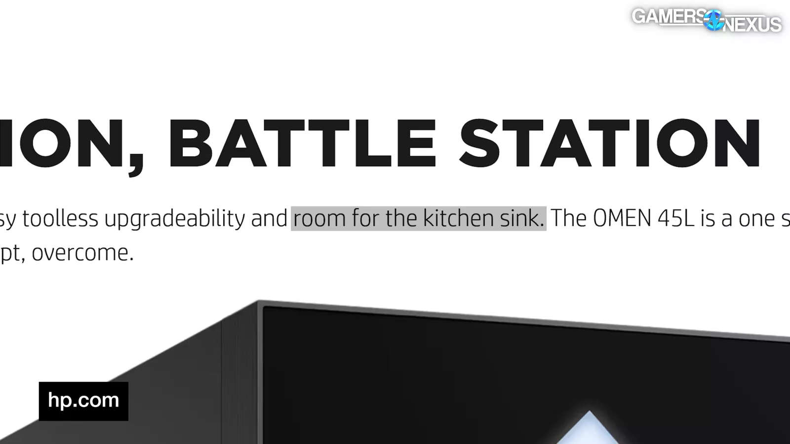The marketing copy will continue until the prebuilts improve. The OMEN 45L apparently has room for the kitchen sink, as long as that kitchen sink doesn’t use a PCIe slot.