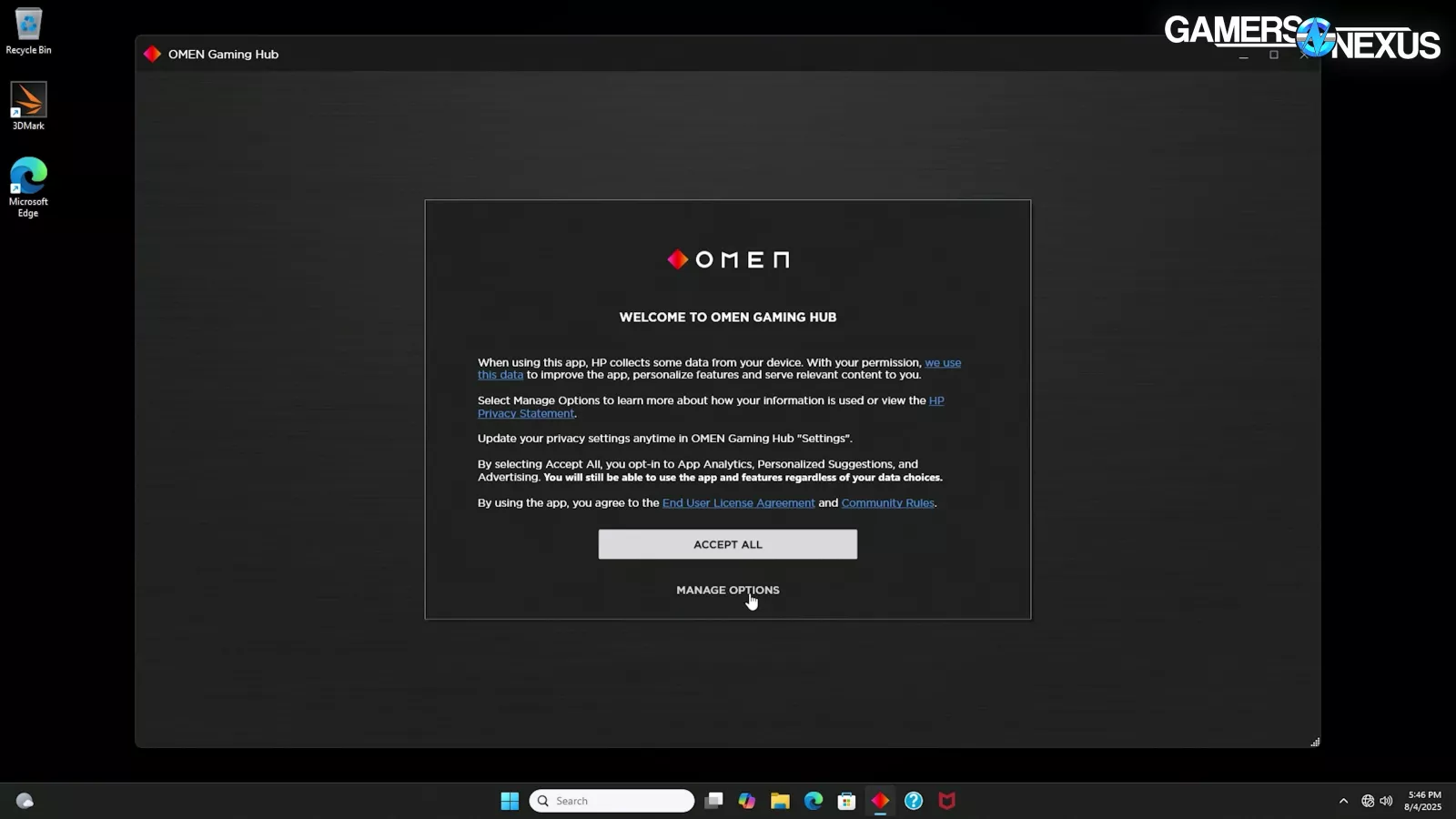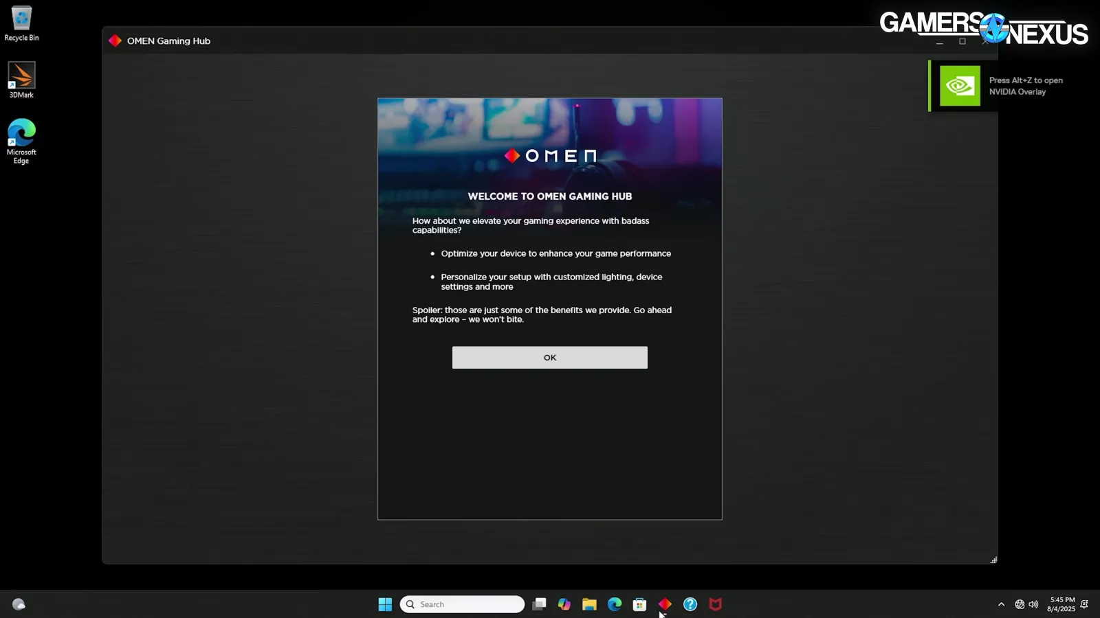 The OMEN Gaming Hub software was, uh, “interesting.” The intro dialog box had some cringey text, like “How about we elevate your gaming experience with badass capabilities?” and closing with “Go ahead and explore - we won’t bite.”