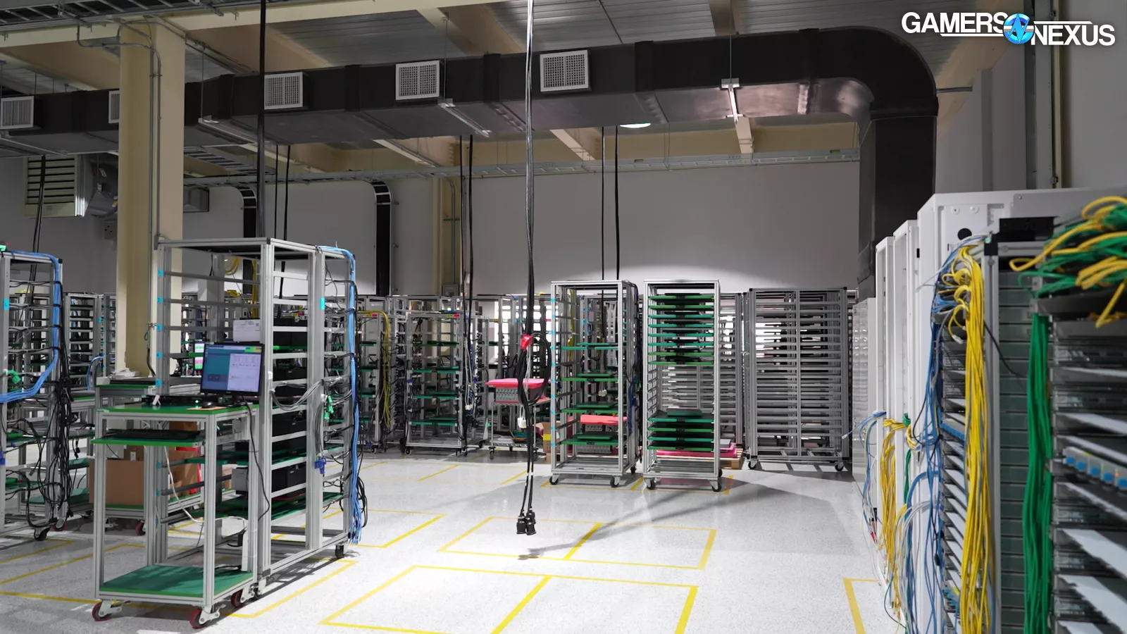 Up to 800 1U servers get burned in just in this room alone. As for its power capabilities, the room is equipped with 80 total test lines, each capable of delivering 5,000W. The total power handling capacity of the testing floor for the factory is a staggering 400kW.