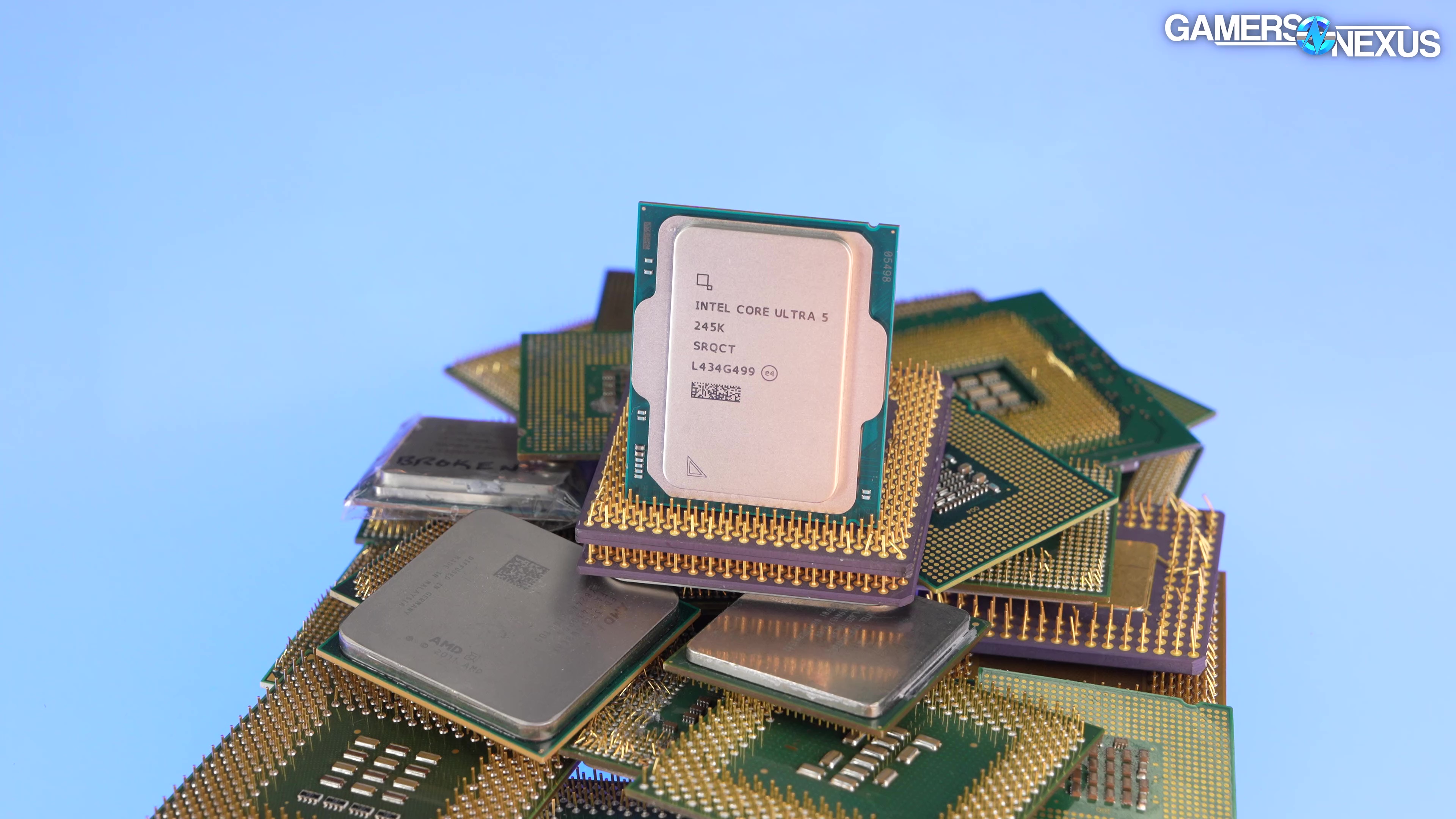 Now we’re reviewing the Intel Core Ultra 245K CPU, which you can think of as sort of a 15600K, just with a new name. This is a 6 P-core, 8 E-core part with 14 total threads. It’s priced at $310 MSRP and is meant to be a new mainstream gaming part.