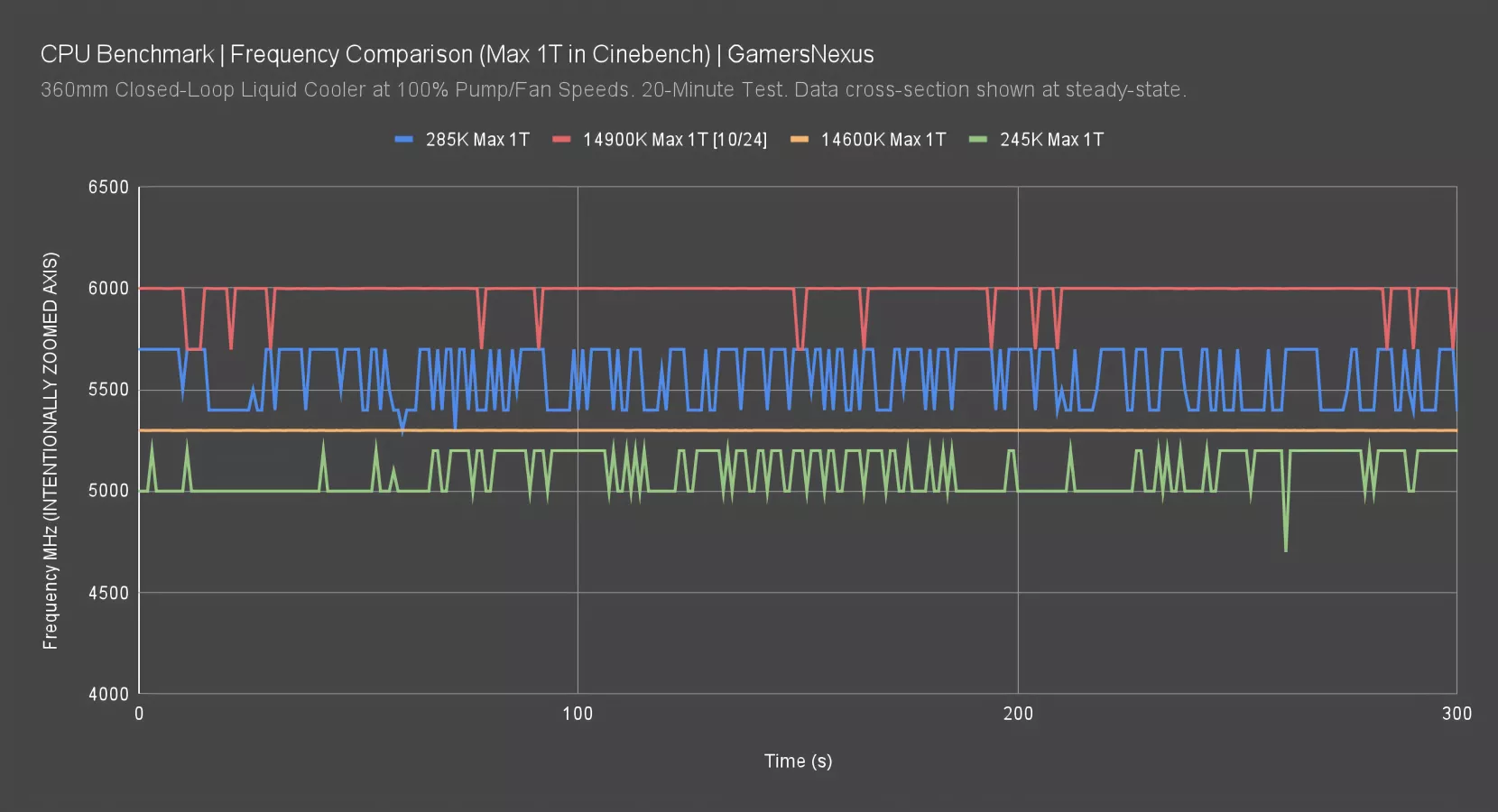 Single-Core Frequency Comparison (14900K vs. 285K)