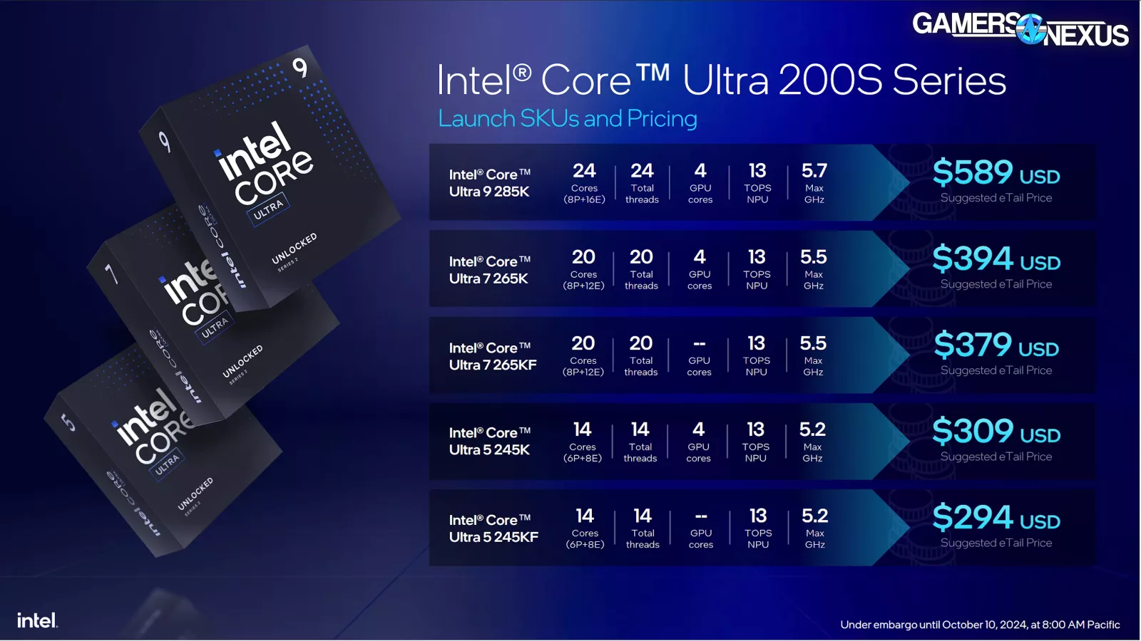 Ultimately, the 245K is beaten by several CPUs that are direct competitors, including the 7700 non-X (watch our review), the preceding 13700K and 14600K, the 7800X3D, and the 9700X.
