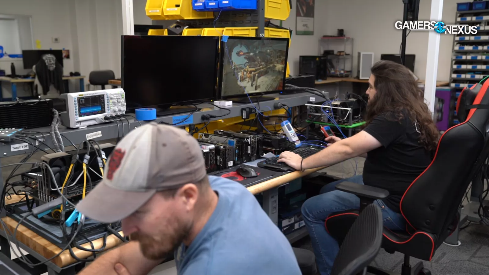 Our philosophy is to review each component in a vacuum, eliminating as many variables and bottlenecks imposed by other components as possible. This means that GPU testing for GPU performance will use a relatively high-powered CPU and RAM, thus hopefully limiting bottlenecks (to the extent possible) outside of the GPU; however, for that same GPU review, we would use a different test bench for acoustics. That's because the acoustics testing does not require unbound performance to eliminate variables, but instead requires a total (within reason) elimination of noise from non-GPU components instead. In this example, we would use the GPU test bench for thermals and gaming, but the GPU acoustic bench for noise levels and frequency response. Likewise, we use a different bench entirely for GPU power consumption measurements, as the host platform is irrelevant for these and only the power consumption matters (and it allows us to asynchronously test power consumption while our primary benches remain occupied for testing gaming or thermals, which greatly improves logistics to allow more testing in a shorter time period).