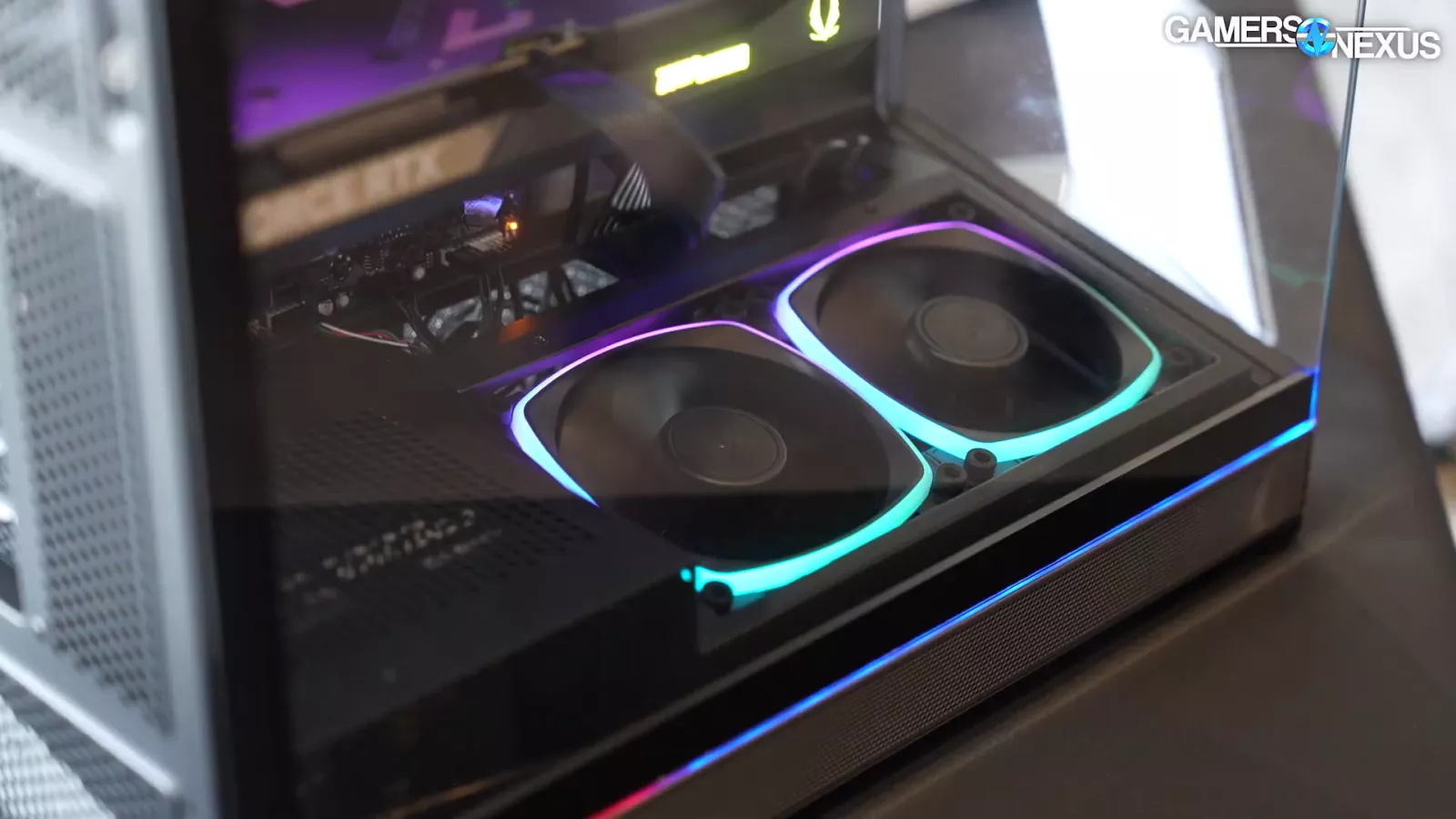 The thing that jumps out to us about this case is its canted tray for its 2 bottom fans, which are reverse blade ones that act as intake.