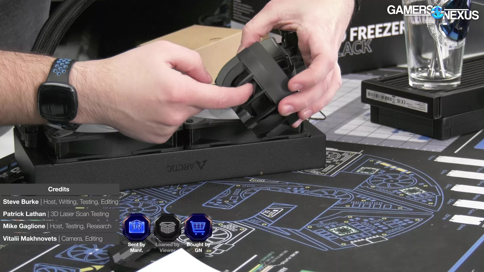 Today we’re reviewing the brand new Arctic Liquid Freezer III. What makes it interesting is that you can pull off its pump cap, which has the VRM fan inside it. It also forces a contact frame for Intel CPUs. This new cooler follows-up the best liquid cooler we’ve tested in the last 4 years -- the Liquid Freezer -- II. It’s... it’s sequential.