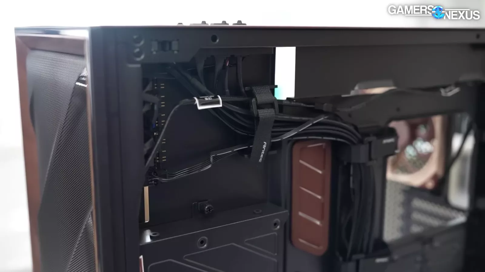 Looking at the back side panel of the case, the unit we saw had extension cables for its fans, which Noctua may also use, but that’s not certain at the moment given the build we saw is early. They’re pretty nice and we use them in our test benches.