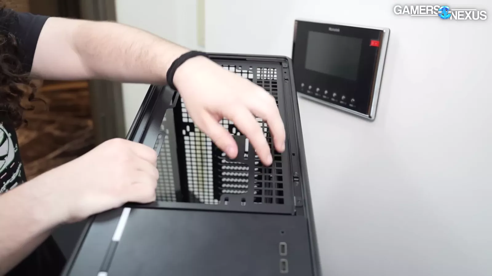 The last feature worth pointing out is that the front top panel with the front IO pops out. This provides access to the top, which is good for open-loop access and getting a radiator in and out.