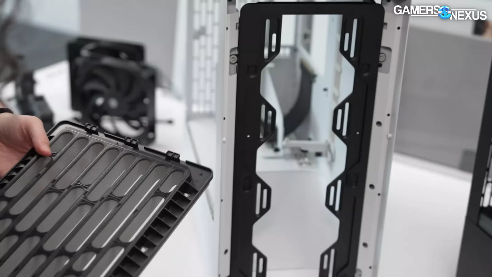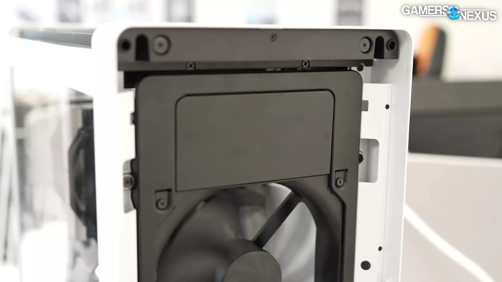 The interior of the case’s front panel has a removable fan tray. Its design is somewhat typical but refined from what we’ve seen. HAVN has done a lot of iterations on it.