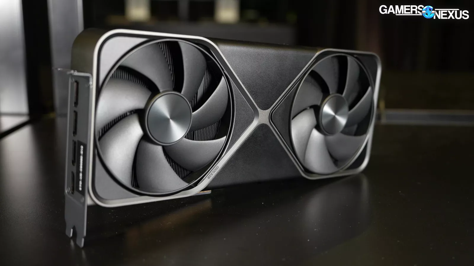 This is a big review, we’ll respect your time: The short version of the review of the RTX 5090 Founders Edition is that the thermal solution is surprisingly good for GPU thermals, if a bit warm for memory thermals, the rasterization gaming uplift at 4K over the RTX 4090 (watch our review) is anywhere from 20% to 50% (depending on the game), ray tracing at 4K is commonly around 27% to 35% uplift over the 4090, and performance improvement at resolutions like 1440p and 1080p see lower improvements. An additional storyline to this review is that the 9800X3D (read our review) remains completely insane in the best ways, because it was able to keep up even at 1080p without major bottlenecking in some benchmarks.