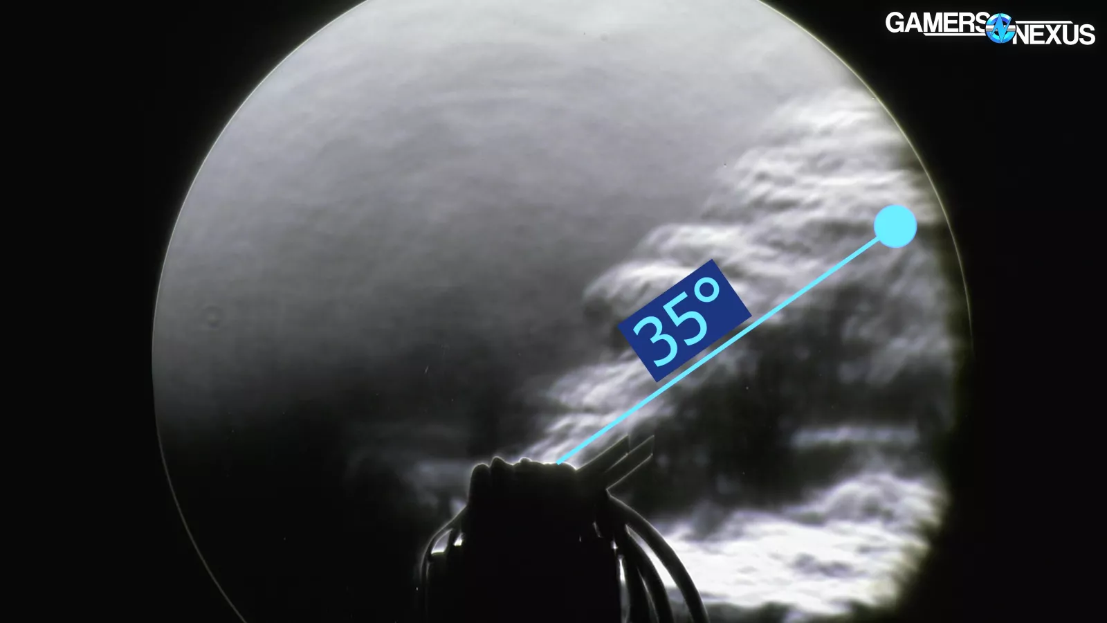 This next angle shows the card on the left and centered. The most interesting thing we see is this straight line of air shot out from those fins at the outer edges of the fan diameter. This is what Gutenberg was talking about in our interview, where they're capitalizing on the area of most efficacy for the fan blade.