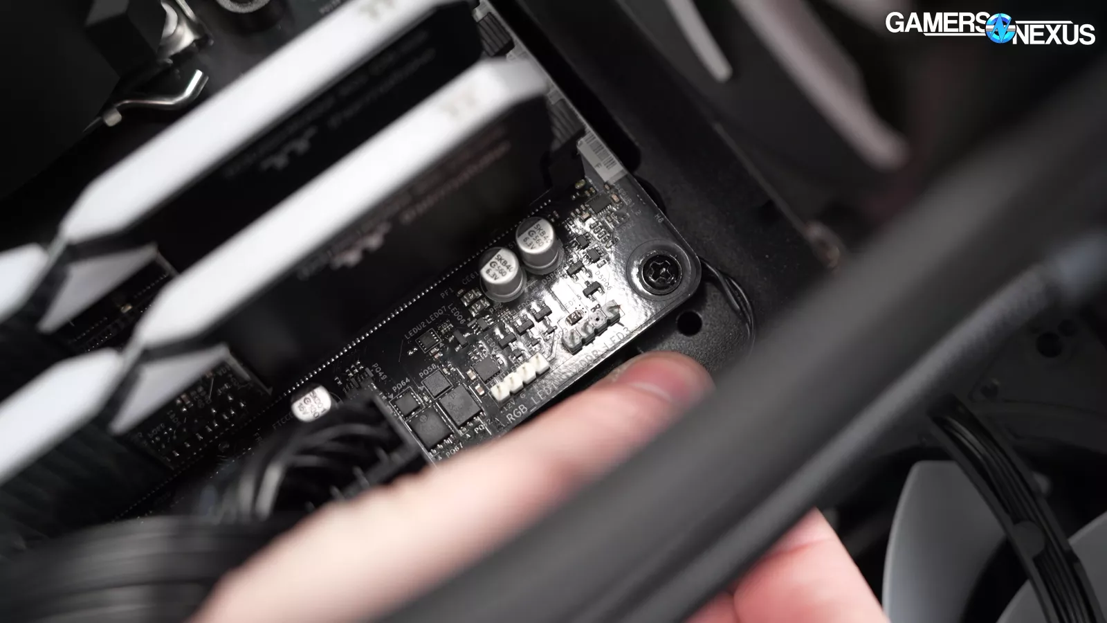 The main interior of the build has a clean assembly, though we did notice 2 loose RGB headers with one of them having a bent pin. It still worked, but that isn’t great.