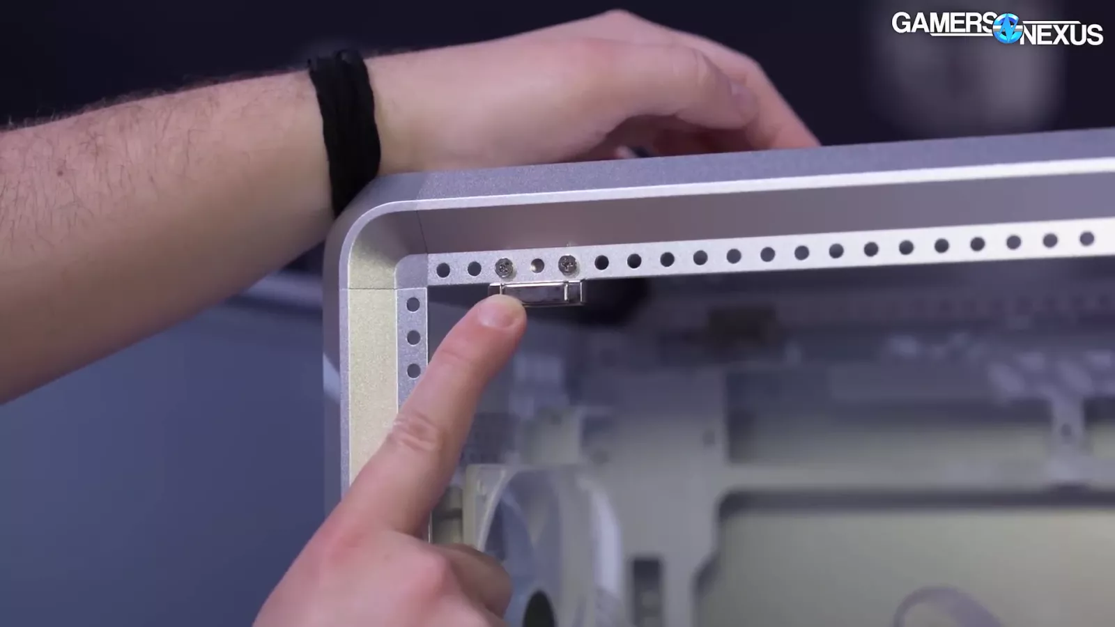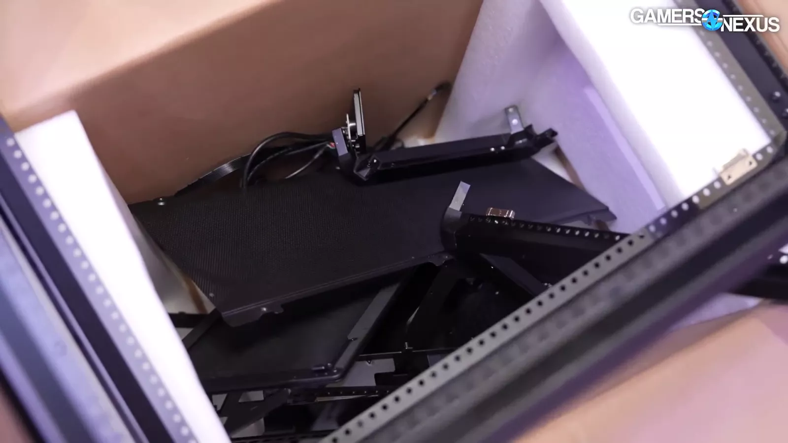 One of the pre-built MF cases we looked at had stuff flipped around in an inverted layout. One of the benefits of its rail system allows the case to have a bar that screws in which can support the GPU. Looking into this system, you can see that the PSU is at the bottom next to a bottom intake fan.