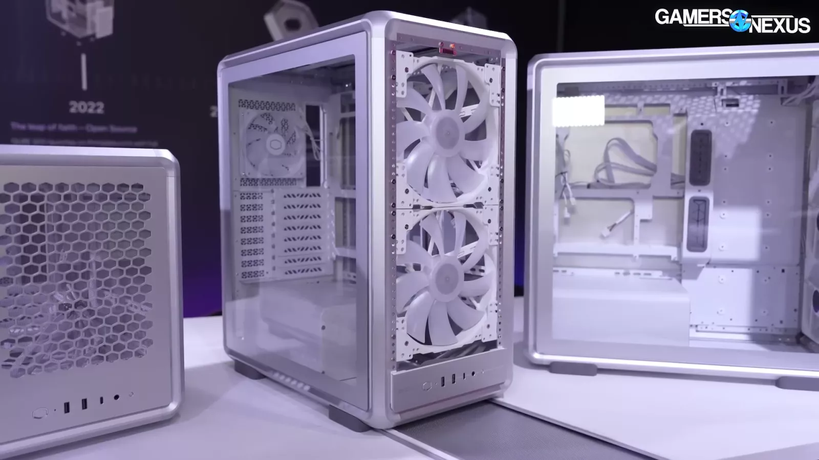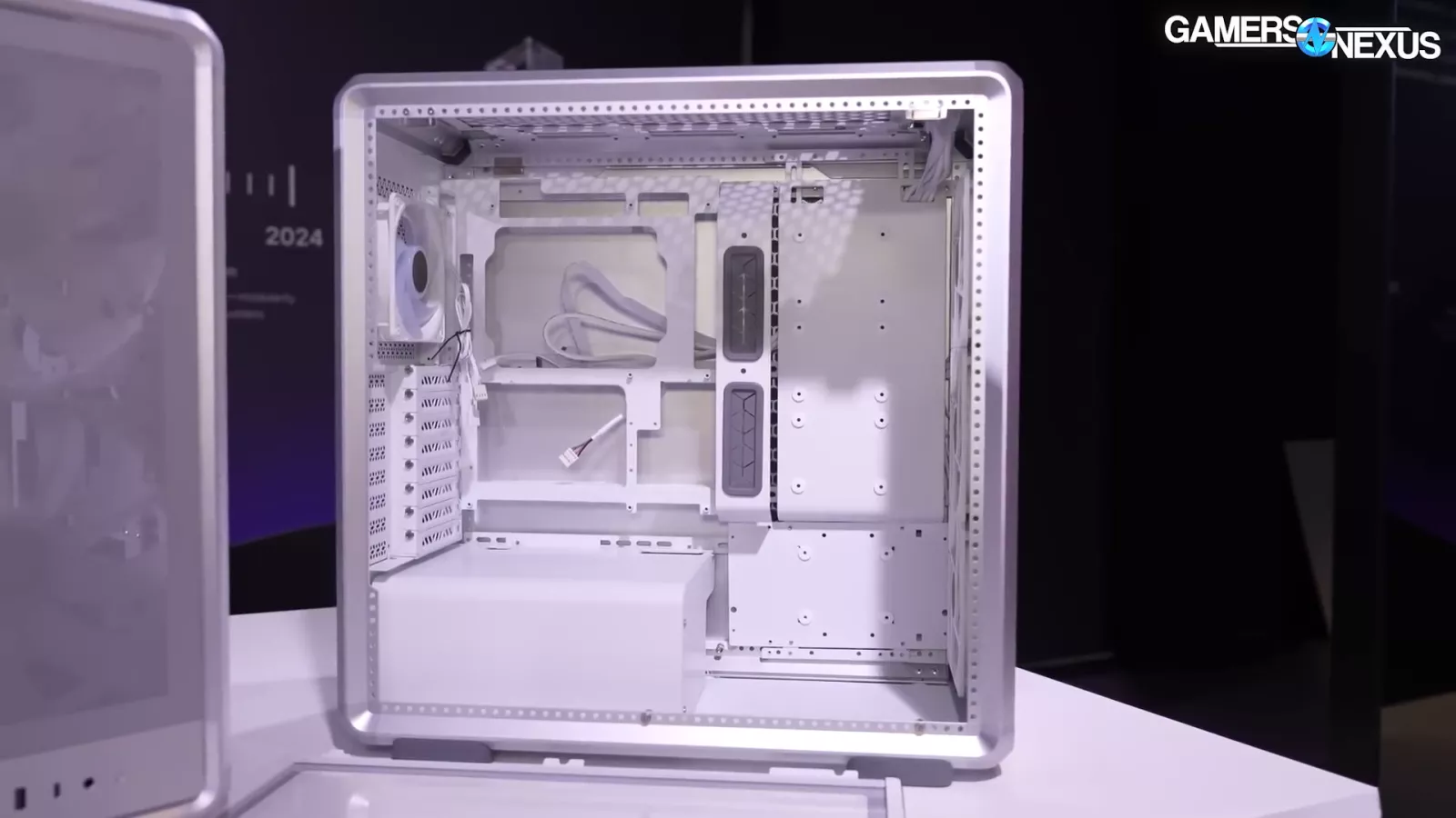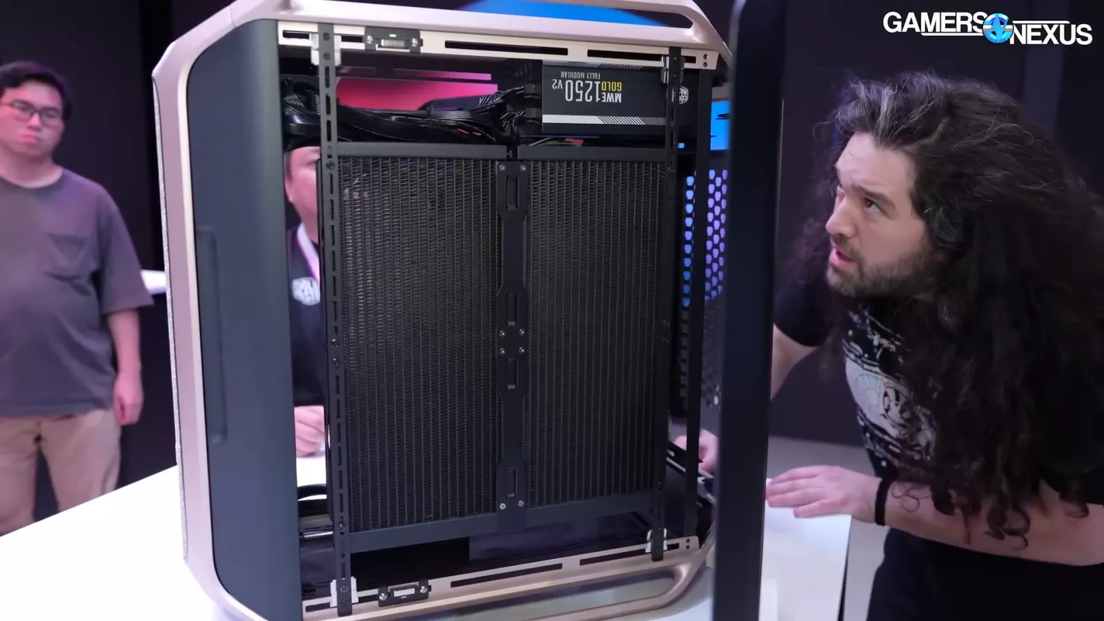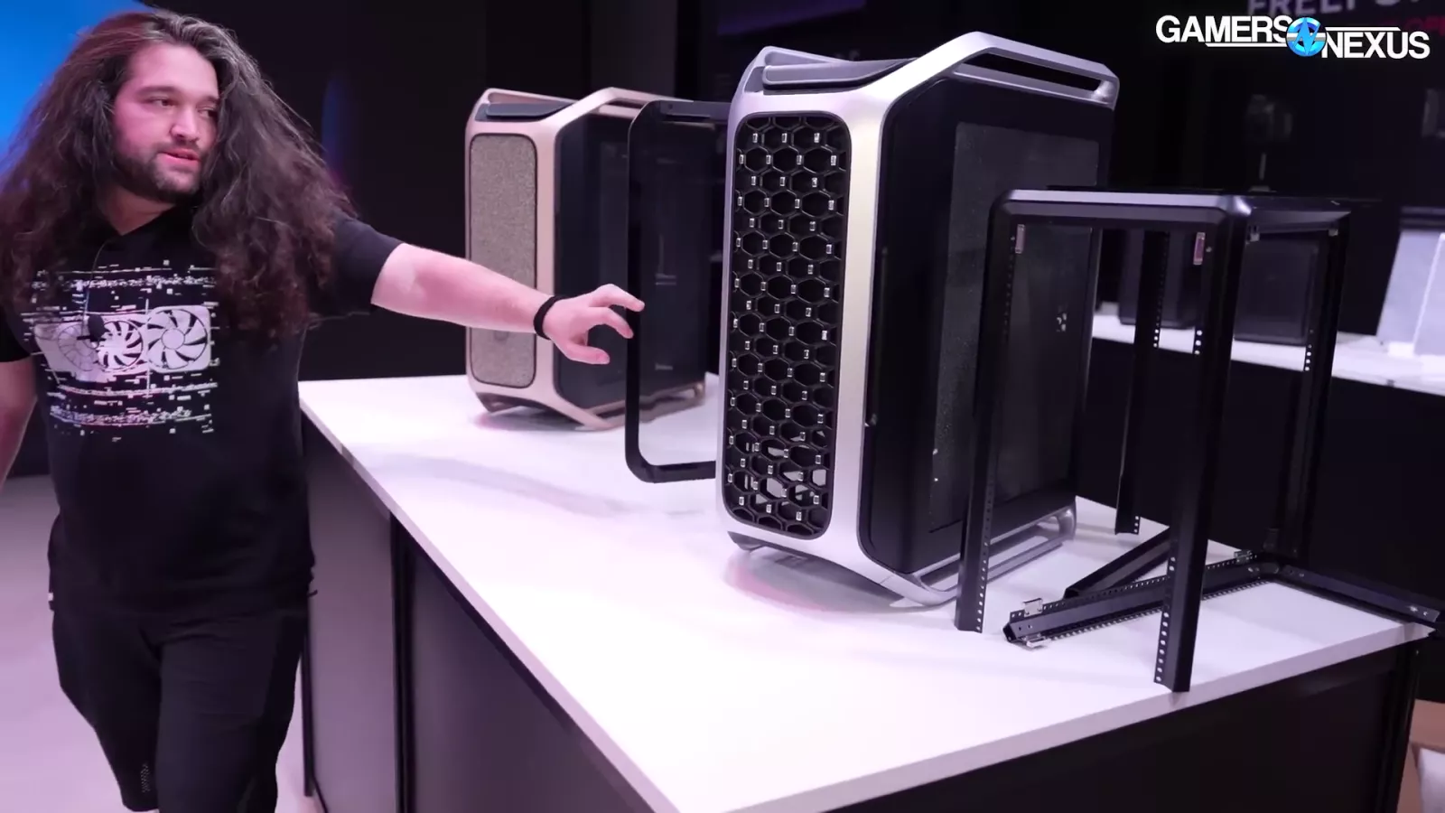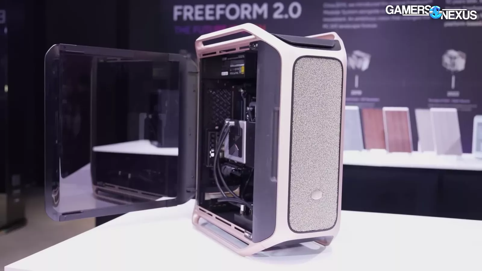 The case in the image above, which goes by "Cooling X,” and uses the company’s new MF frame system. If you look at the corner, you can see the individual columns. At Computex, we saw it as a pre-built system.