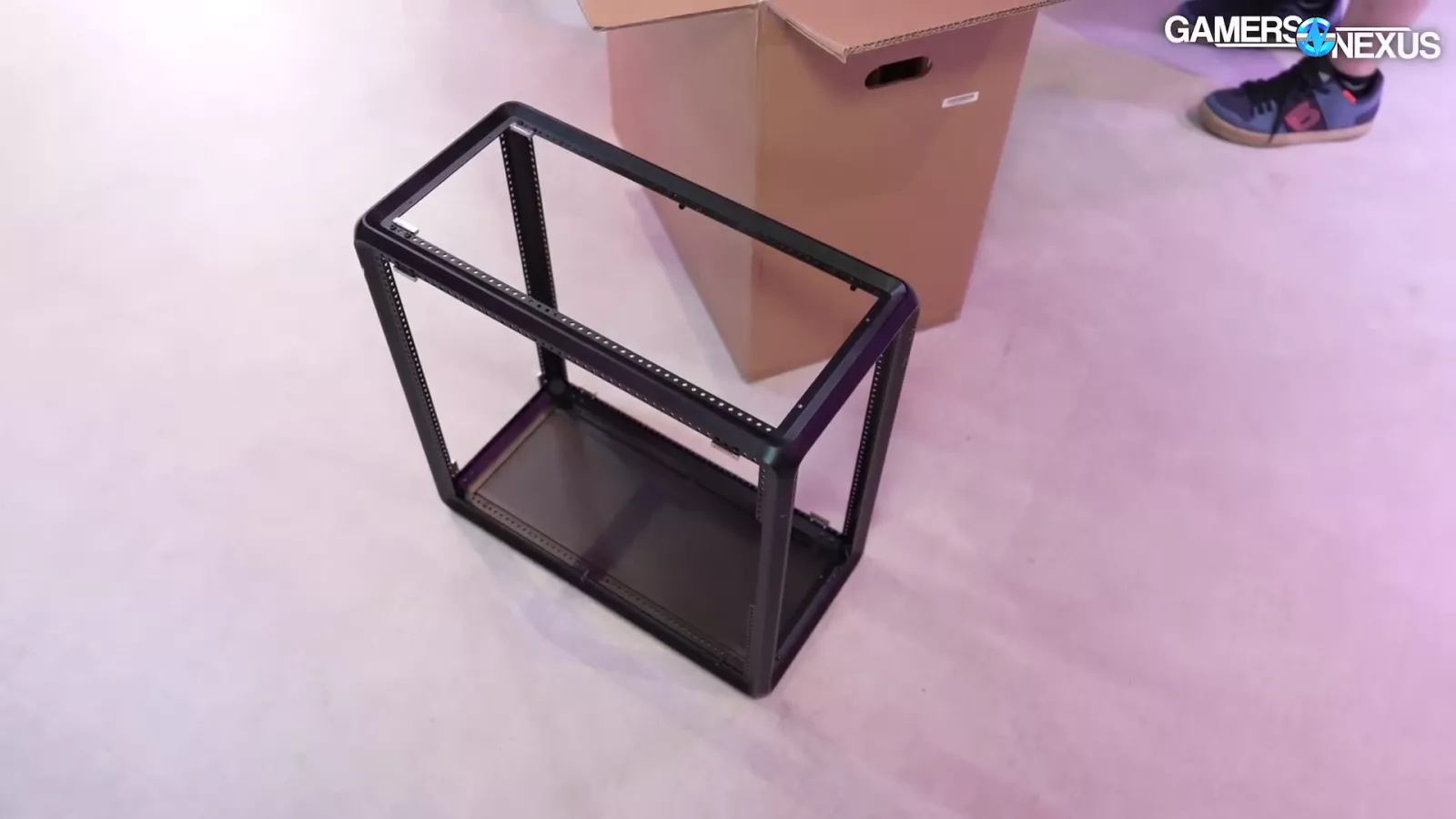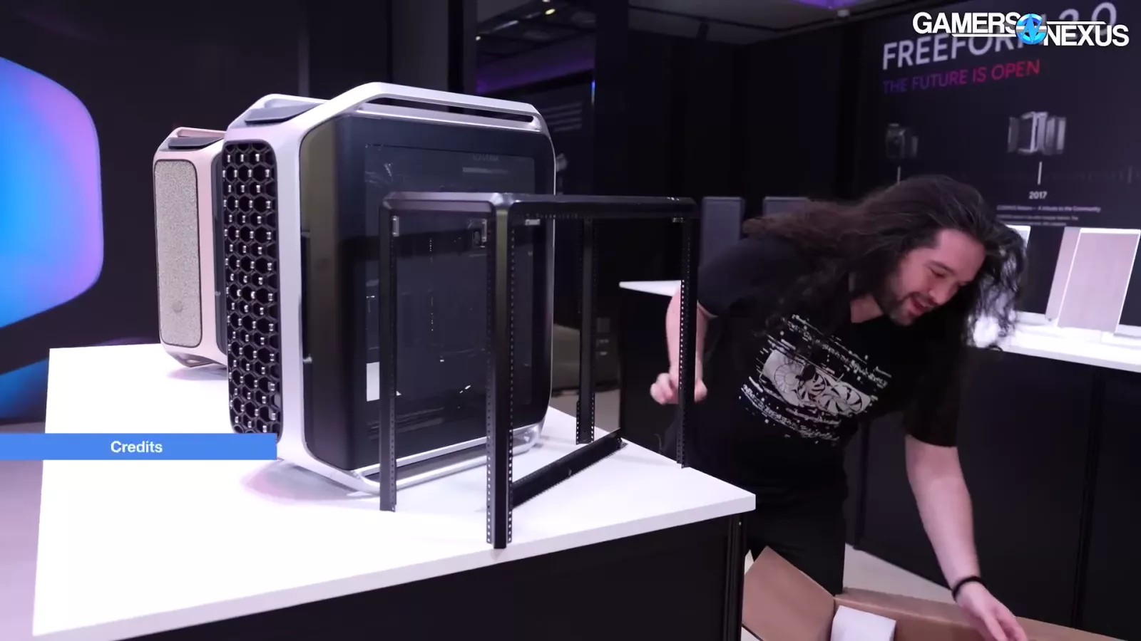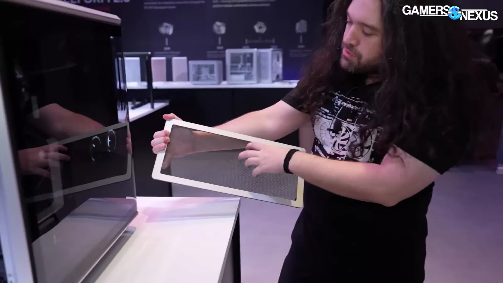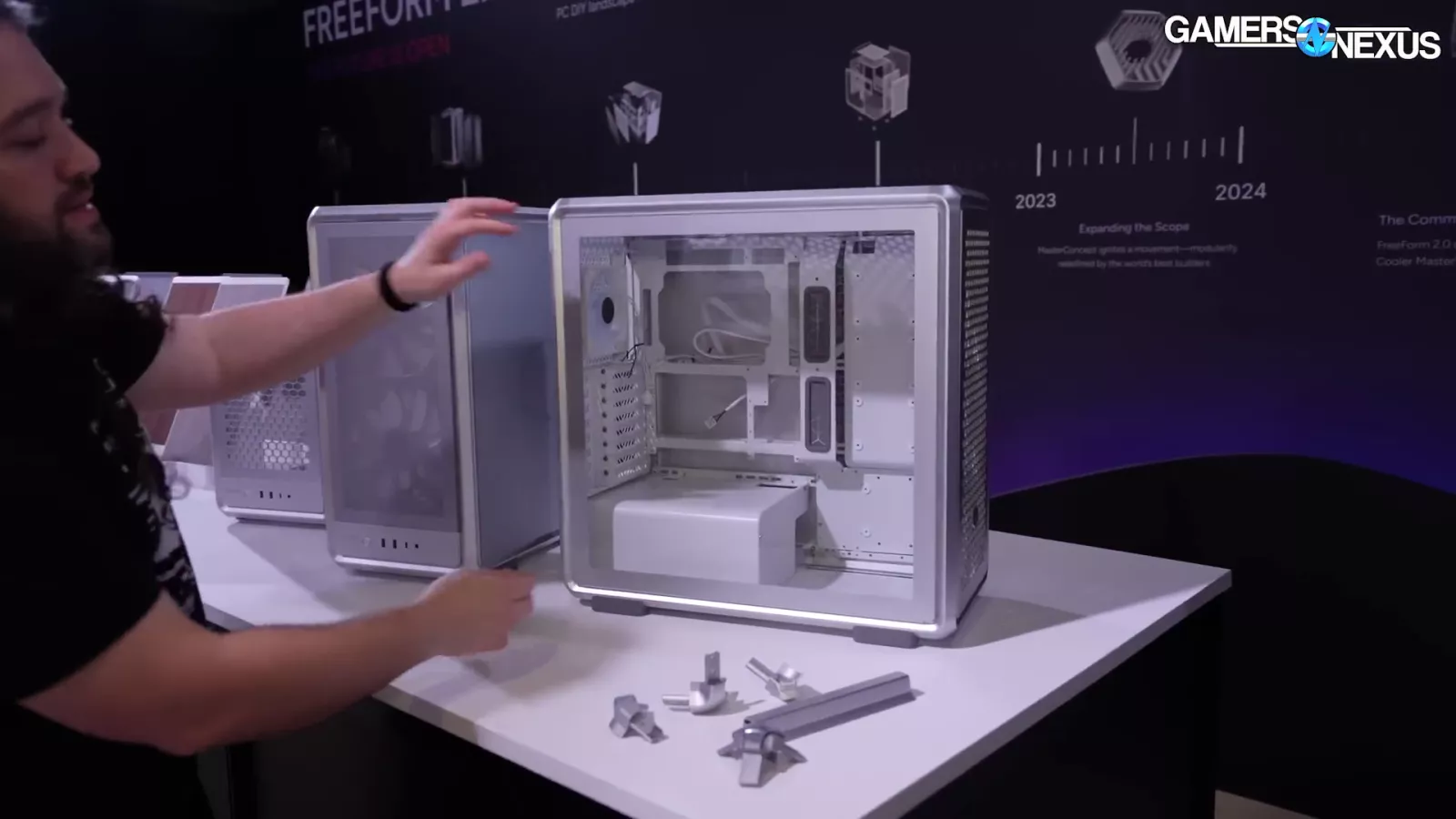 The case in the image above, which goes by "Cooling X,” and uses the company’s new MF frame system. If you look at the corner, you can see the individual columns. At Computex, we saw it as a pre-built system.