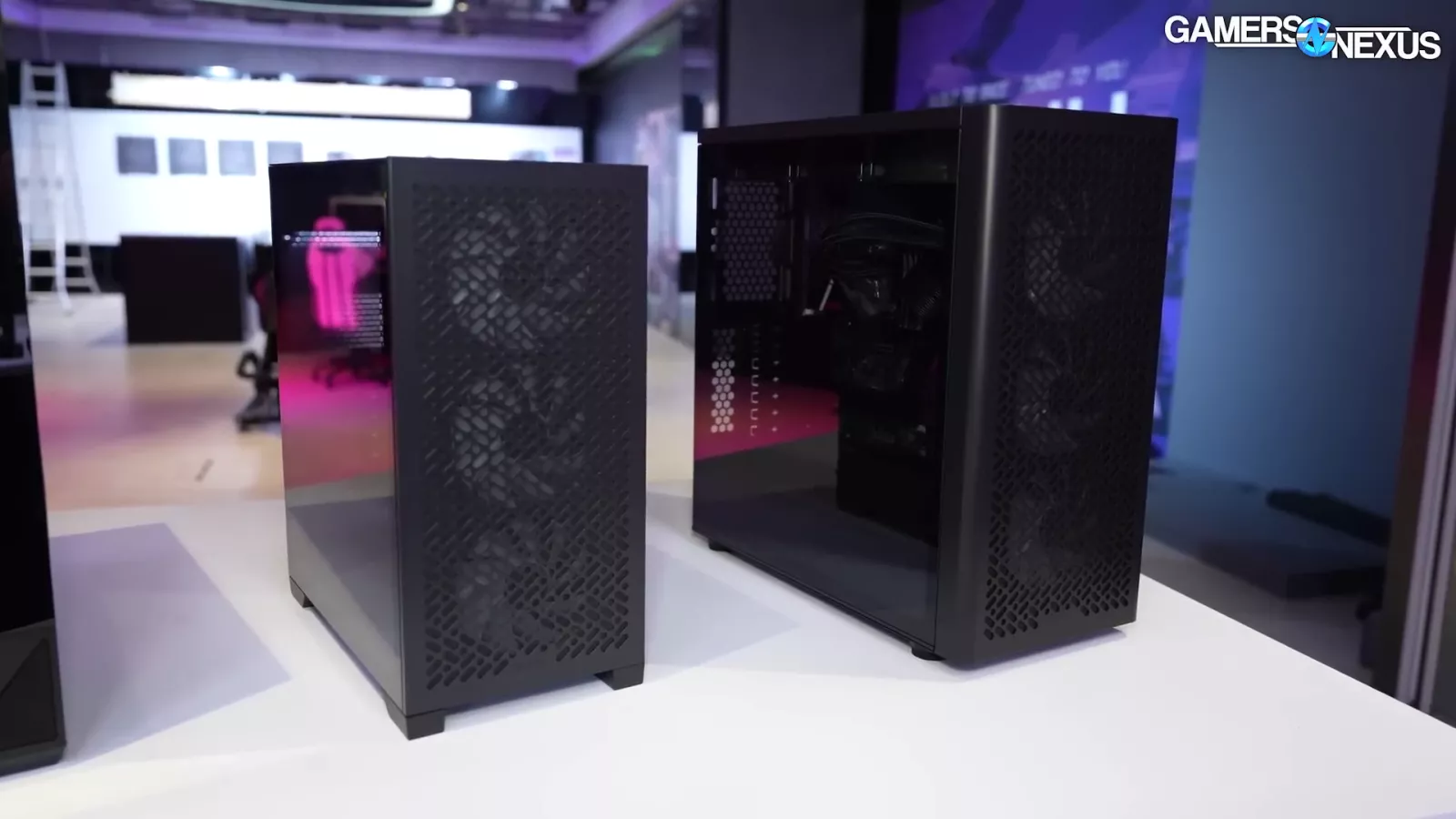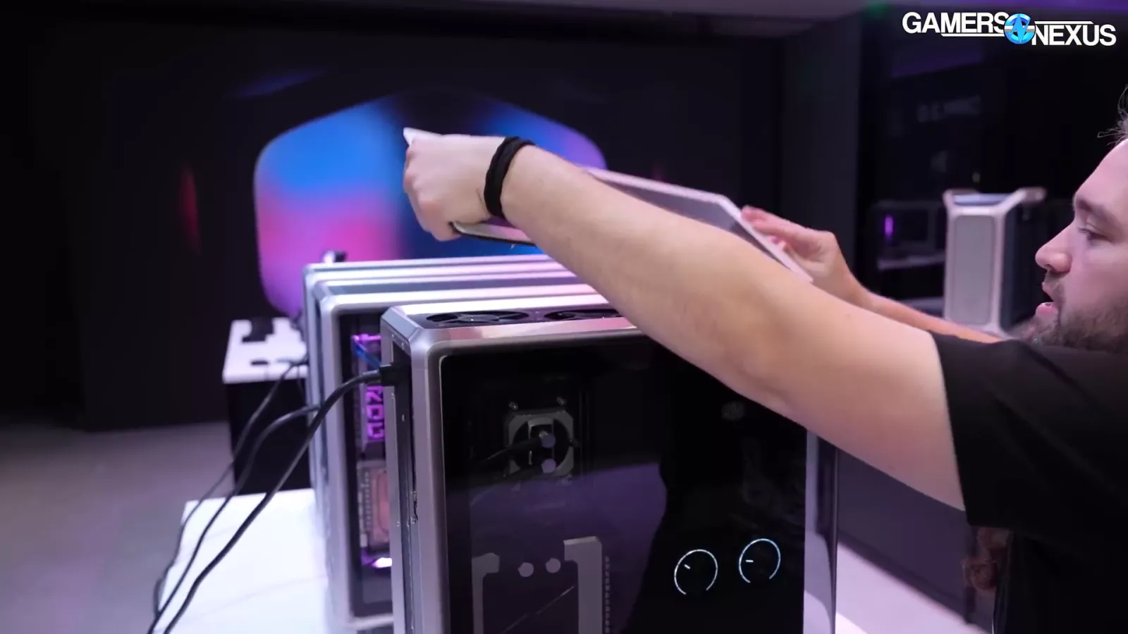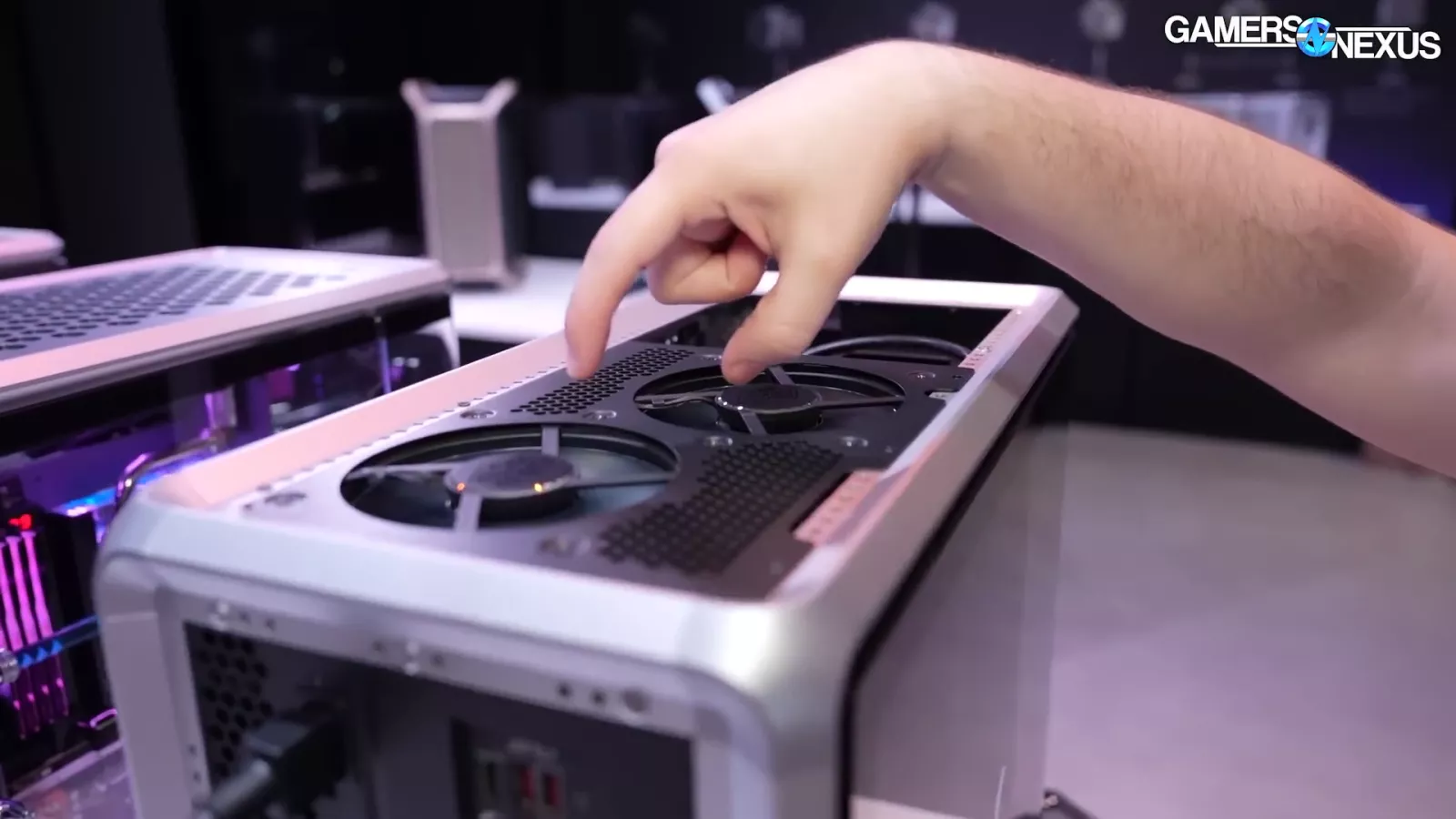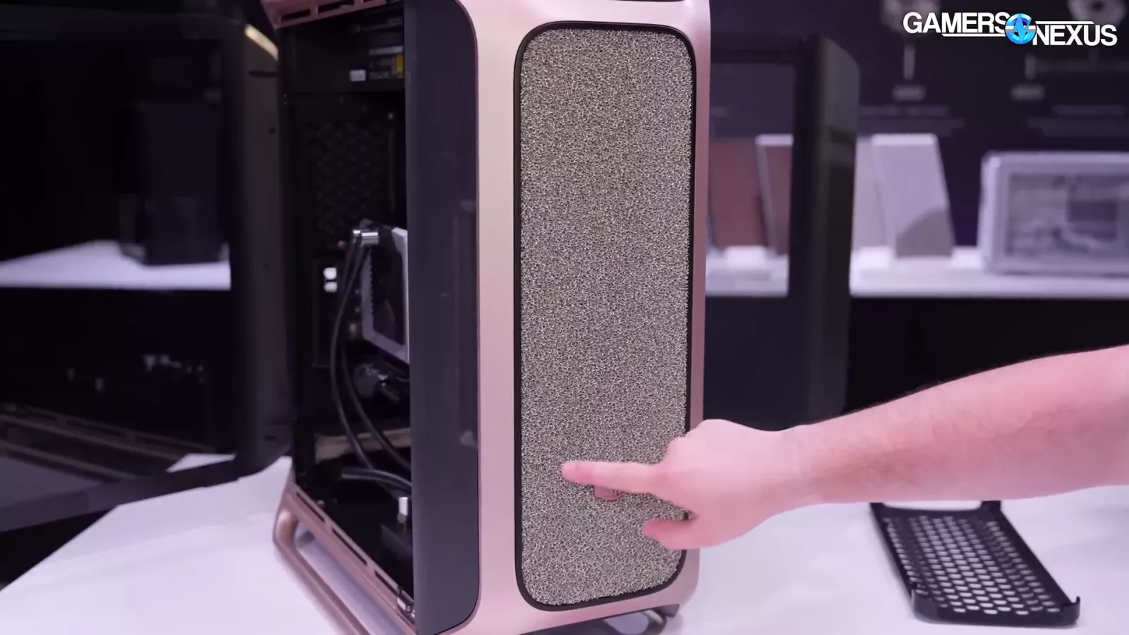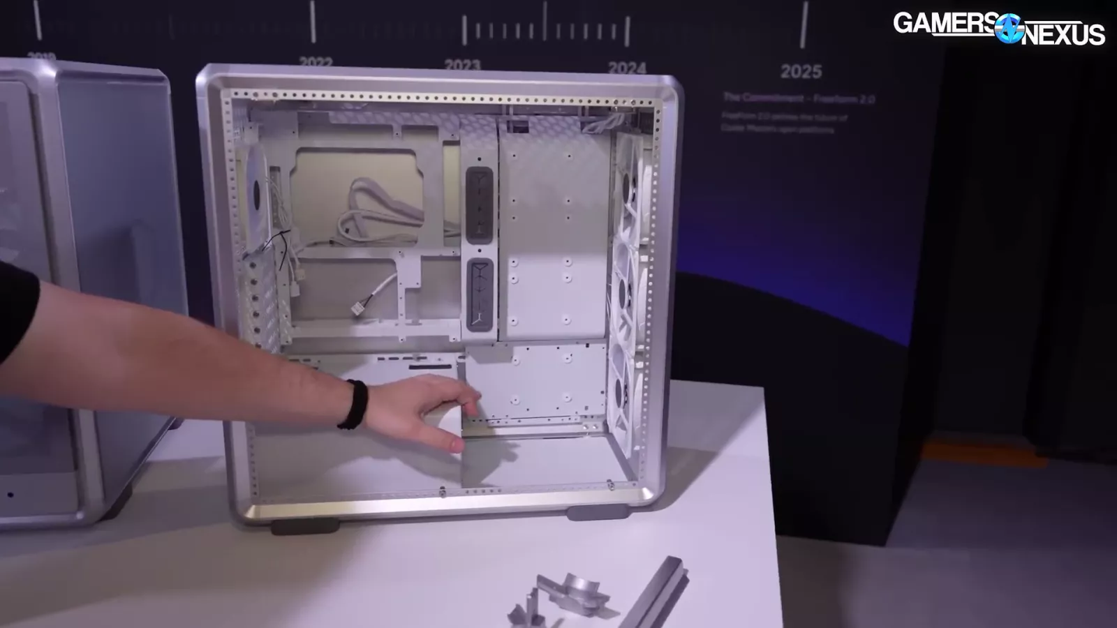 The case in the image above, which goes by "Cooling X,” and uses the company’s new MF frame system. If you look at the corner, you can see the individual columns. At Computex, we saw it as a pre-built system.