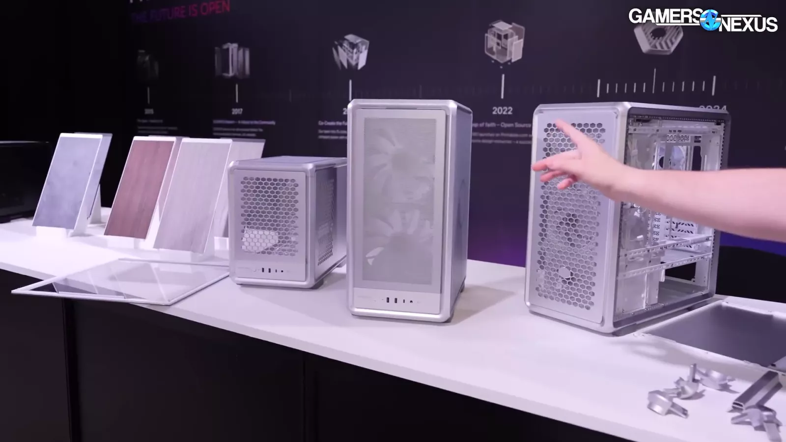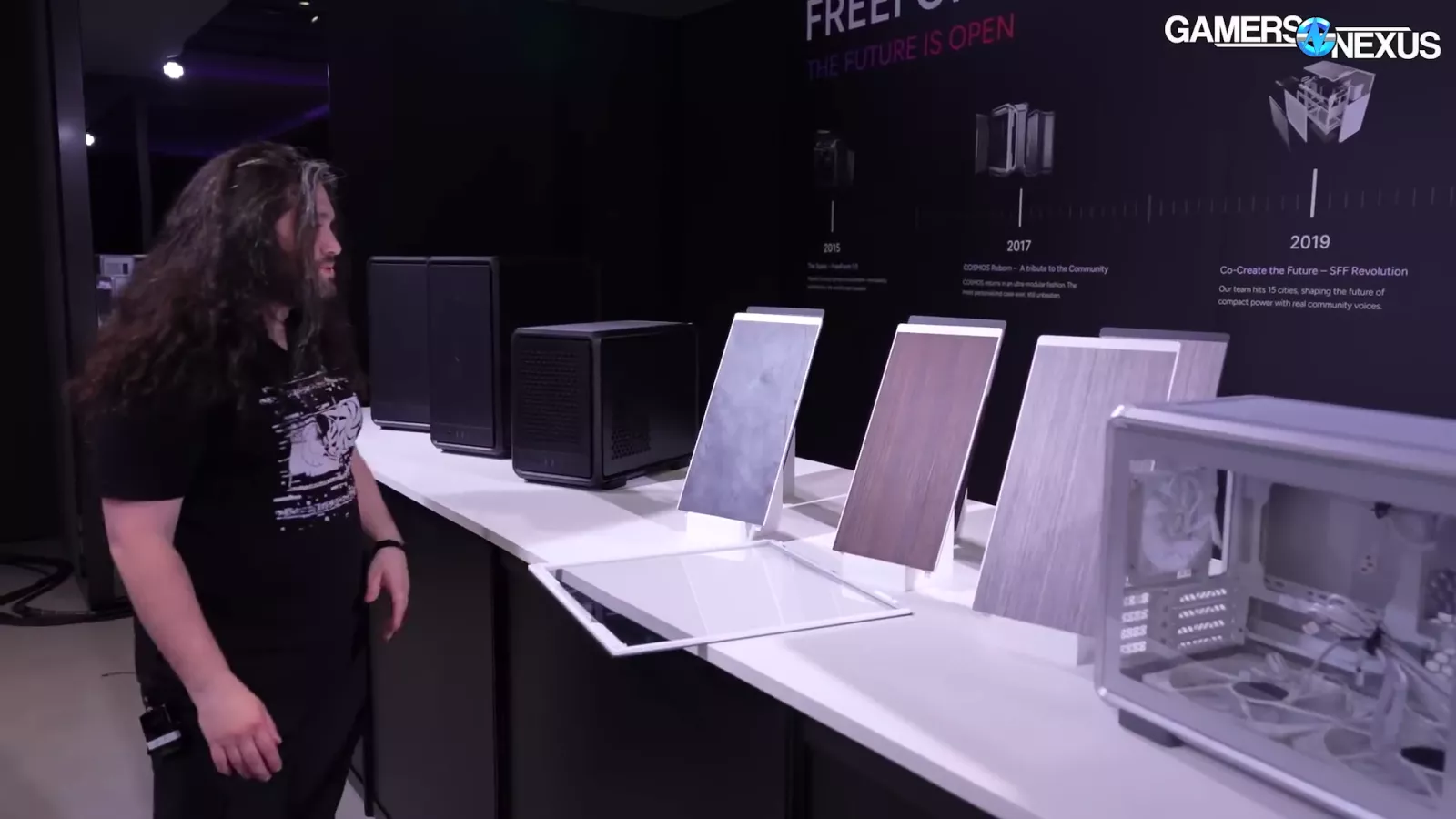 Cooler Master also showed off different panel types they’re experimenting with. One of them included a facade-style stone.