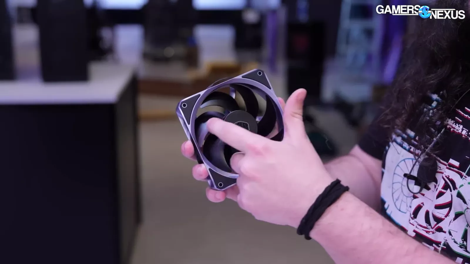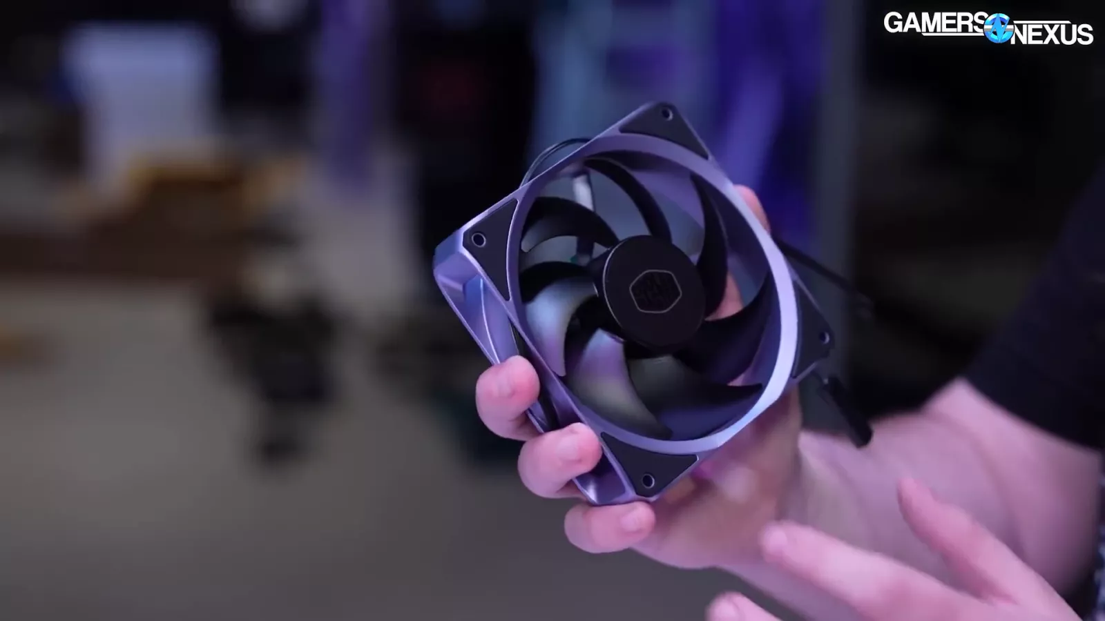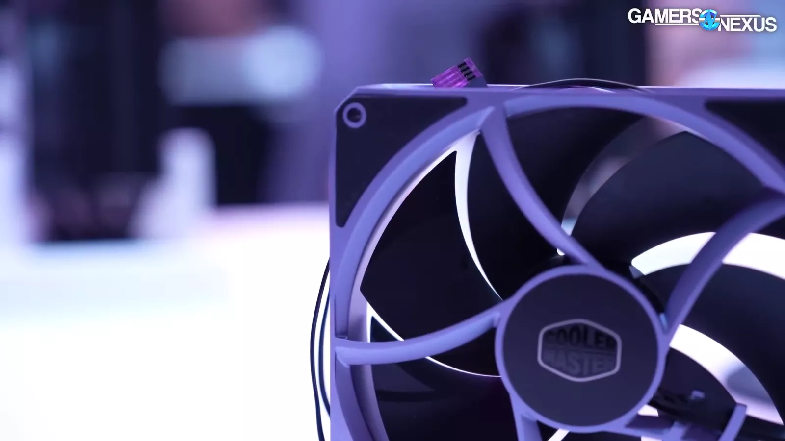 Cooler Master’s mixed fans, which use plastic blades coupled with an aluminum frame, come with fluid dynamic bearings (FDBs). The clearance between the fan blade tip and the frame is important as the smaller that clearance is, the better performance you get. The major downside is that as the fan ages, it can start to clip the interior of the frame. Having it too close can also negatively impact yields. The solution to this is LCP, which is incredibly expensive, or metal, because it doesn’t deform, but that’s also expensive. Right now, Cooler Master says it’s about a .8mm distance, which is pretty good. The company is targeting 0.6mm by the time the fan launches.