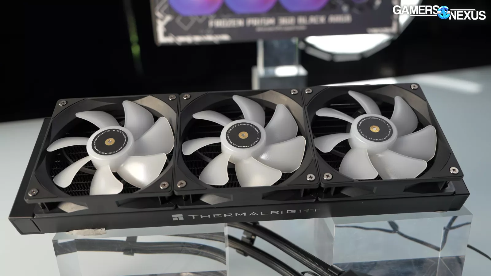 It’s a wonder how Thermalright is able to make any money at all with some of the prices, where it manages to undercut major cooler brands significantly. The big difference with liquid coolers versus air is one that we can’t reasonably test in a review window: If an air cooler works well, it’s unlikely to have any kind of long-term failures (other than maybe the fan, which is cheap to replace). Liquid coolers can have issues with gunk build-up, corrosion, or pump failures. Gunk build-up is the main concern and happens normally from chemical imbalances or poor flux work in the radiators. That’s not something we can evaluate in a review, and we’re frontloading that consideration because it just seems like the price would have to include some kind of downside.