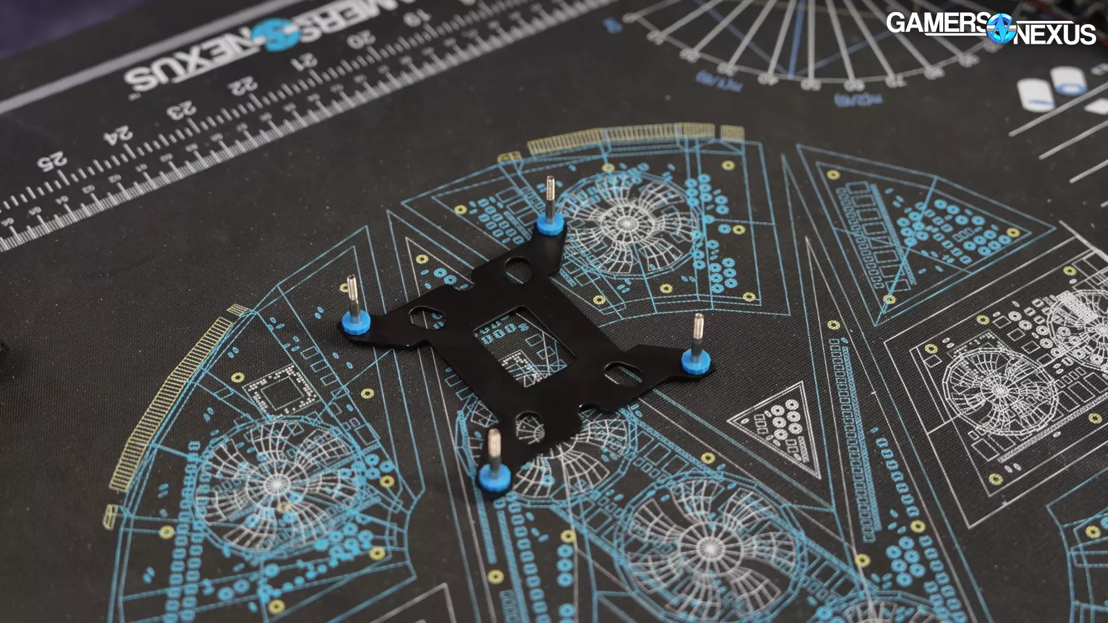 From here, install the mounting brackets, ensuring that they’re laid out in the correct position for your CPU (We used the middle position for LGA 1700), and secure them with 4 nuts.
