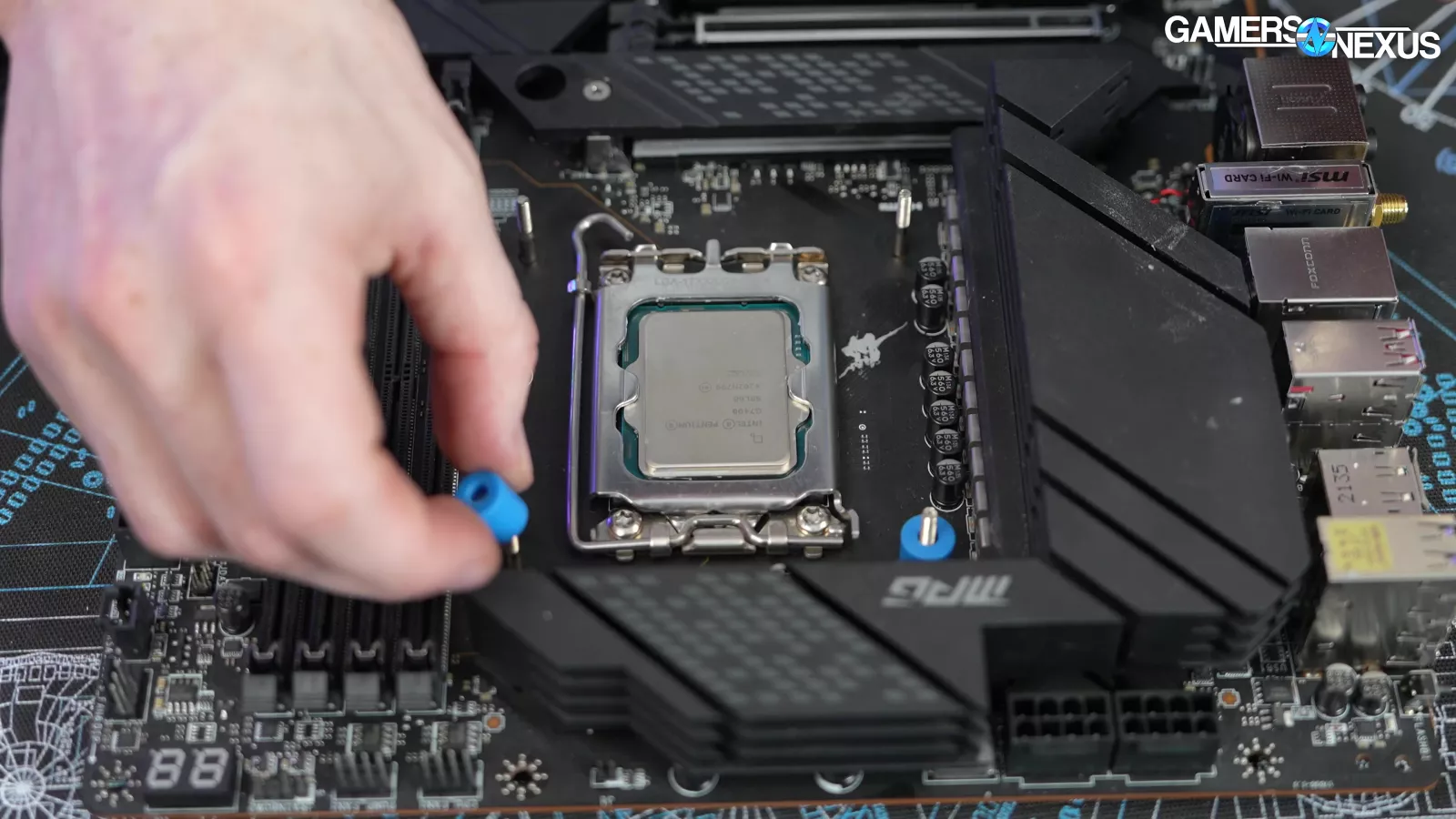 Once that’s established, it’s time to install the standoffs into place. We used the farther outer positions for LGA 1700.